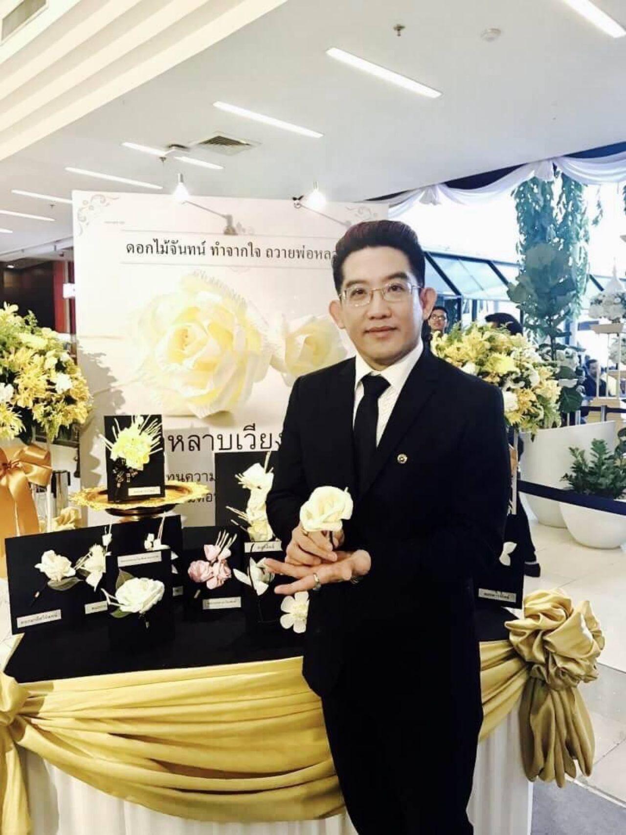 พอคิดแบบนั้นก็เห็นภาพพระองค์ท่านที่เช็ดเหงื่อ และมีรูปที่เห็นเม็ดเหงื่อและพระองค์ท่านไม่เช็ดด้วย กับอีก 1 ภาพที่อาจารย์แล้วจะต้องบรรยายเสมอ คือเรื่องของคุณยายตุ้ม ในปี 2528 ที่มาจากสกลนครแล้วมานั่งรอโดยนำดอกบัวมา 3-4 ดอกเหี่ยวๆ จริงๆ ดอกบัวมันสด แต่คือรอตั้งแต่เช้าจนถึงเย็นดอกบัวมันก็เหี่ยว คุณยายตุ้มนั่งอยู่กับพื้นแล้วเอามือพนมยกดอกบัวขึ้น พระองค์ท่านน้อมพระวรกายลงไปแล้วรับดอกบัวจากมือคุณยายตุ้ม อาจารย์มองว่าพระองค์ท่านไม่มองก็ได้ พระองค์ท่านจะเดินเลยไปก็ได้ และพระองค์ท่านก็เหนื่อยจากการมีพระราชกรณียกิจมากมายมหาศาลตลอดทาง