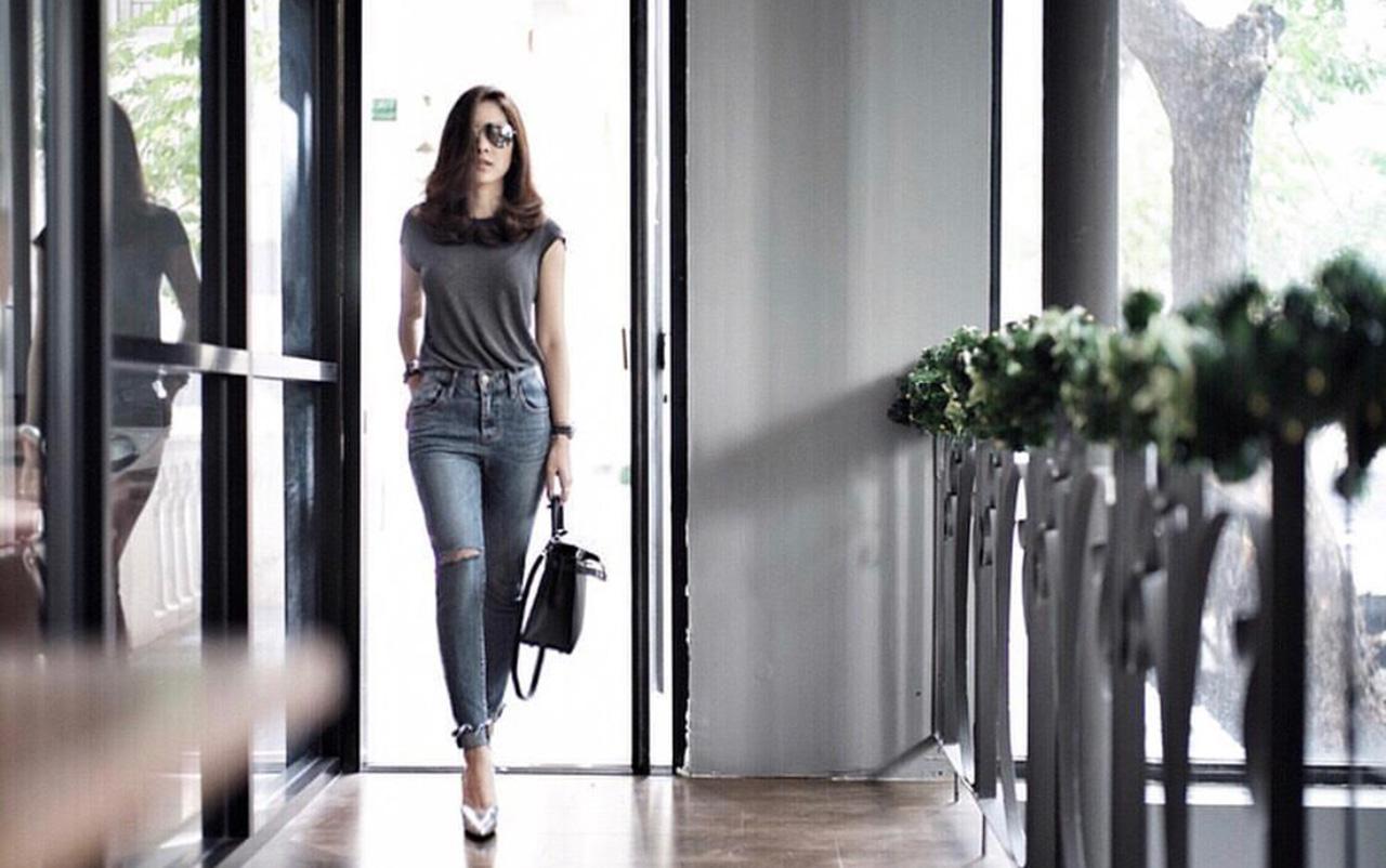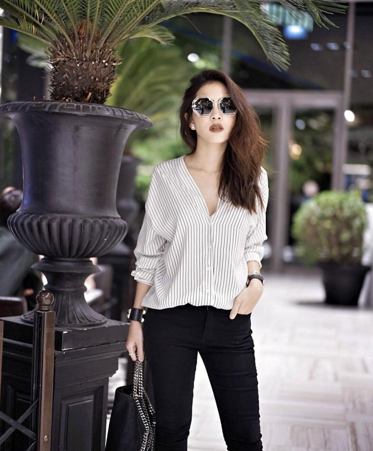 โดยส่วนตัวเราชอบแบบเรียบหรู แต่ก็ไม่ได้เรียบไปซะหมด มีความคลาสสิกด้วย เราคิดว่าแต่งลุคนี้ยังไงก็รอดสำหรับเรา จริงๆ พื้นฐานเป็นคนชอบใส่เสื้อยืดกางเกงยีนส์อยู่แล้วในวันธรรมดา ซึ่งเราเป็นผู้หญิงทำงานอยู่แล้ว ใส่แค่นี้มันก็คล่องตัว แต่ถ้าวันที่เราออกงานเราก็ให้เกียรติงานหน้าผมต้องเป๊ะเข้ากับธีมงาน