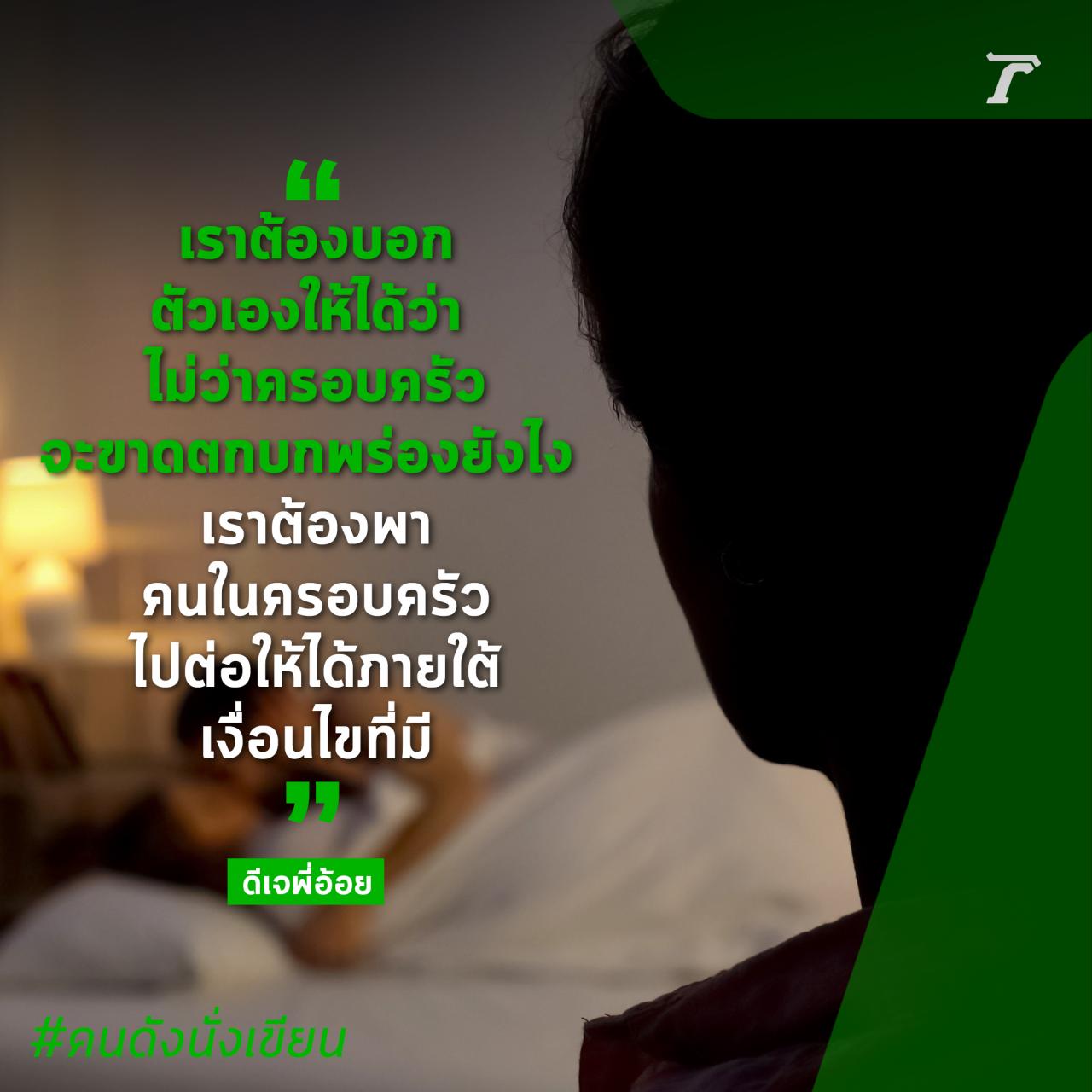 กอดคุณแม่ให้แน่นๆ คุยกัน ถามกัน เป็นกำลังใจให้ท่าน “ไม่ว่ายังไง ผมอยู่ตรงนี้เสมอนะครับแม่” ตอนเป็นเด็กตัวเล็กๆ เราเป็นฝ่ายร้องขอ อยากให้ครอบครัวอยู่พร้อมหน้าพร้อมตา แต่พอโตขึ้นมา เราต้องบอกตัวเองให้ได้ว่า ไม่ว่าครอบครัวจะขาดตกบกพร่องยังไง เราต้องพาคนในครอบครัวไปต่อให้ได้ภายใต้เงื่อนไขที่มี วันนี้หัวใจคนที่เจ็บกว่าเราคือคุณแม่ ดูแลท่านดีๆ สามีนอกใจ แต่ยังมีลูกที่ใส่ใจ อาจจะแทนกันไม่ได้ แต่อย่างน้อยคงไม่ทำให้ท่านเคว้งคว้างจนเกินไป อย่ามองว่าเรื่องนอกใจ ใครๆ ก็ทำ คนที่ช้ำ ไม่ใช่แค่คนที่ถูกนอกใจ แต่คือทุกคนในครอบครัวที่เชื่อมาเสมอว่า ครอบครัวเรารักกันมาก ความซื่อสัตย์ให้กันมันยากตรงไหน และต่อให้บ้านแตก อย่ายอมให้ชีวิตแหลก ไปเพราะคนไม่รู้จักพอ