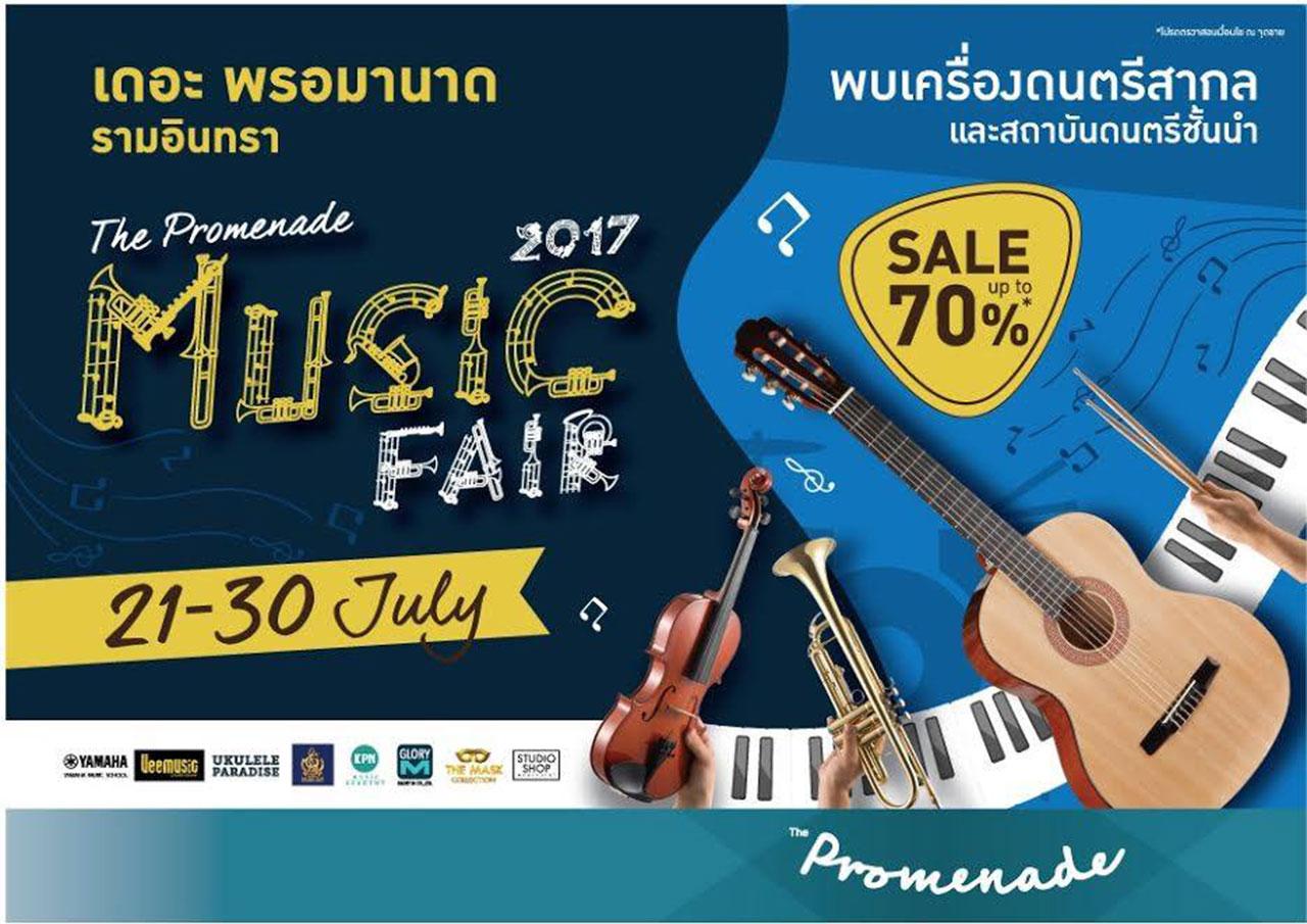 เดอะ พรอมานาด ไลฟ์ สไตล์ มอลล์ รามอินทรา จัดงาน มิวสิค แฟร์ Music Fair 2017 ให้คนรักเสียงดนตรีได้เลือกช็อปเครื่องดนตรี ที่นำมาจำหน่ายหลากสไตล์หลายแบรนด์ ในราคาที่ลดสูงสุดถึง 70 เปอร์เซ็นต์ พร้อมความสนุกจาก Music Play Room ห้องดนตรีสำหรับเด็กๆ ที่จะได้เรียนรู้และทดลองเล่นโดยคุณครูจากสถาบันดนตรีชั้นนำระดับประเทศ