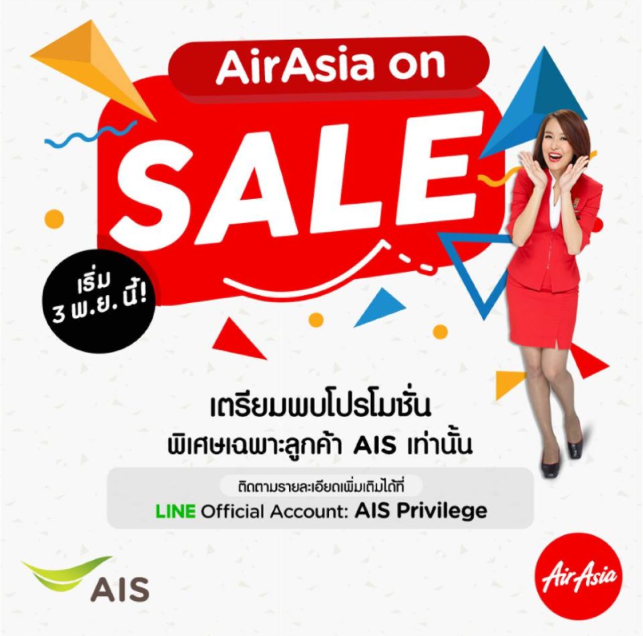 อ้อ ทิ้งท้ายด้วย AirAsia On Sale เตรียมพบกับโปรโมชั่นพิเศษเฉพาะลูกค้า AIS เท่านั้น วันที่ 3 พ.ย. 60 นี้พิเศษสุดๆ