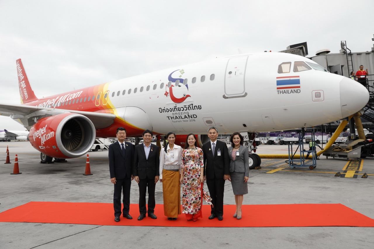 สายการบินไทยเวียตเจ็ทจัดงาน “Amazing Thailand Tourism 2018 Take-Off” เผยโฉมการตกแต่งเครื่องบินลายใหม่ด้วยโลโก้ The Amazing Thailand Tourism Year 2018 โดยได้รับเกียรติจาก ฯพณฯ กอบกาญจน์ วัฒนวรางกูร รัฐมนตรีว่าการกระทรวงการท่องเที่ยวและกีฬาแห่งประเทศไทย และ ฯพณฯ เหวียน ไฮ บัง เอกอัครราชทูตสาธารณรัฐสังคมนิยมเวียดนามประจำประเทศไทยร่วมเป็นเกียรติในวันแรกของการเปิดตัวแคมเปญ The Amazing Thailand Tourism Year 2018