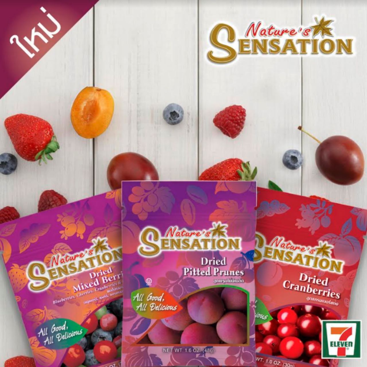 เครือเฮอริเทจ ผู้ผลิตและจัดจำหน่ายอาหารและเครื่องดื่มเพื่อสุขภาพ ขอนำเสนอ ผลไม้อบแห้ง แบรนด์ “เนเจอร์ เซนเซชั่น (Nature's Sensation)” ในบรรจุภัณฑ์ใหม่รูปแบบซอง 3 รสชาติ ได้แก่ แครนเบอรี่ ขนาด 30 กรัม, มิกซ์เบอรี่ ขนาด 30 กรัม และพรุน ขนาด 48 กรัม เหมาะสำหรับคนรักสุขภาพและตอบโจทย์สายเฮลตี้อย่างแท้จริง เพราะเราคัดสรรผลไม้คุณภาพพรีเมียมส่งตรงจากทวีปอเมริกา พร้อมจำหน่ายแล้วในราคาเพียง 28 บาท ณ ร้านเซเว่น-อีเลฟเว่นทุกสาขา