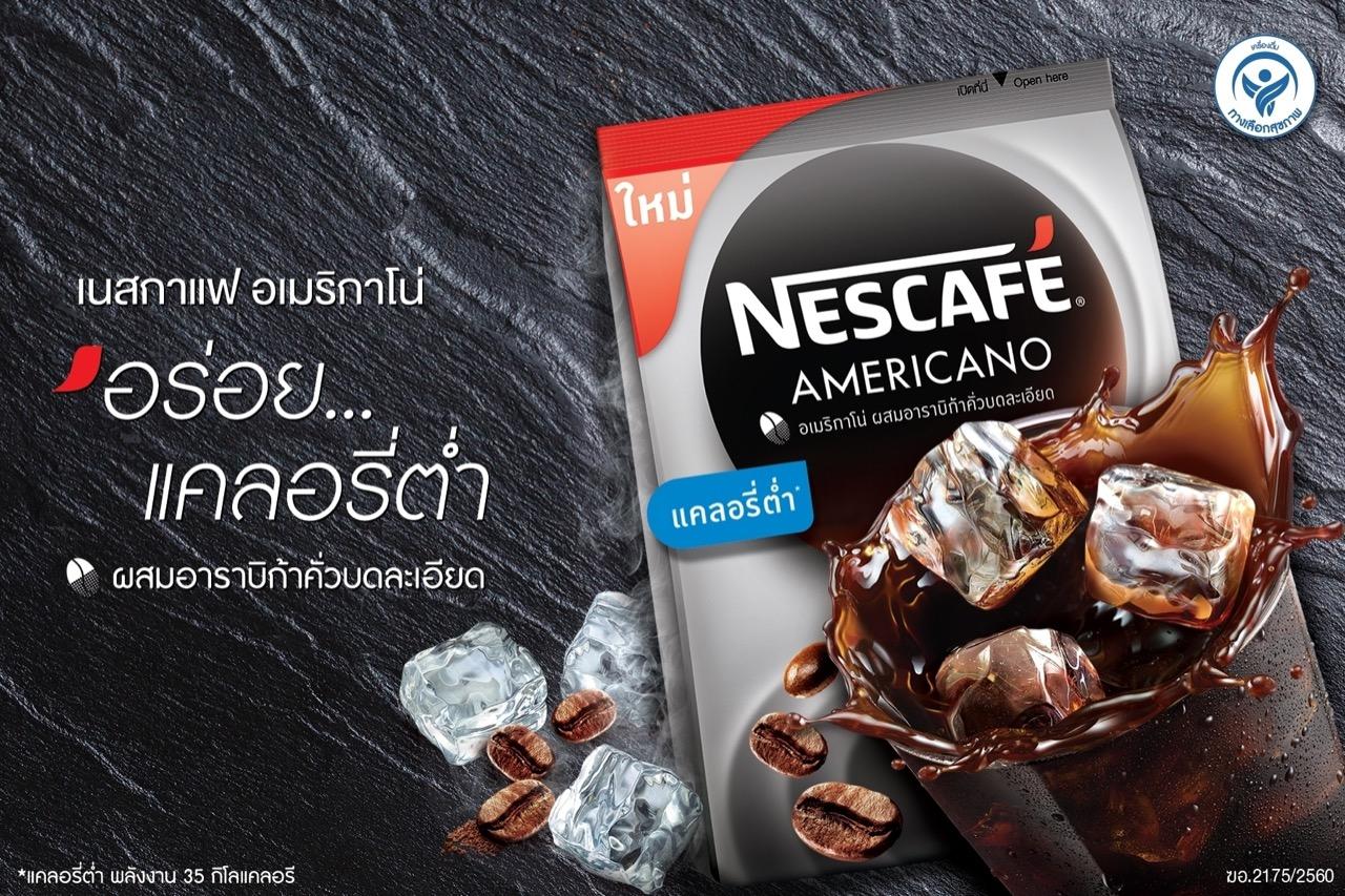 บริษัท เนสท์เล่ (ไทย) จำกัด ขอแนะนำ “เนสกาแฟ อเมริกาโน่” ใหม่ กาแฟอเมริกาโน่ ปรุงสำเร็จสไตล์คาเฟ่จากเนสกาแฟครั้งแรกของโลก ผสมกาแฟอาราบิก้าคั่วบดละเอียดด้วยเทคโนโลยีเอกสิทธิ์เฉพาะของเนสกาแฟ เพื่อมอบสัมผัสนุ่มละมุน พร้อมรสชาติและกลิ่นหอมกรุ่นของกาแฟคั่วบดแท้ๆ ในทุกแก้ว เนสกาแฟ อเมริกาโน่ ละลายได้ในน้ำเย็น คอกาแฟสามารถชงเองได้ง่ายๆ สดชื่นในแบบเย็น รับซัมเมอร์ หรืออร่อยเข้มในแบบร้อน ทั้งยัง แคลอรี่ต่ำ อร่อยเบาๆ เพียง 35 กิโลแคลอรี่ต่อซอง เนสกาแฟ อเมริกาโน่ ใหม่ ได้รับการรับรองว่าเป็นเครื่องดื่มทางเลือกสุขภาพ คอกาแฟจึงสามารถสดชื่นกับเนสกาแฟ อเมริกาโน่ ใหม่ ได้โดยไม่ต้องกังวลกับปริมาณน้ำตาลและไขมัน