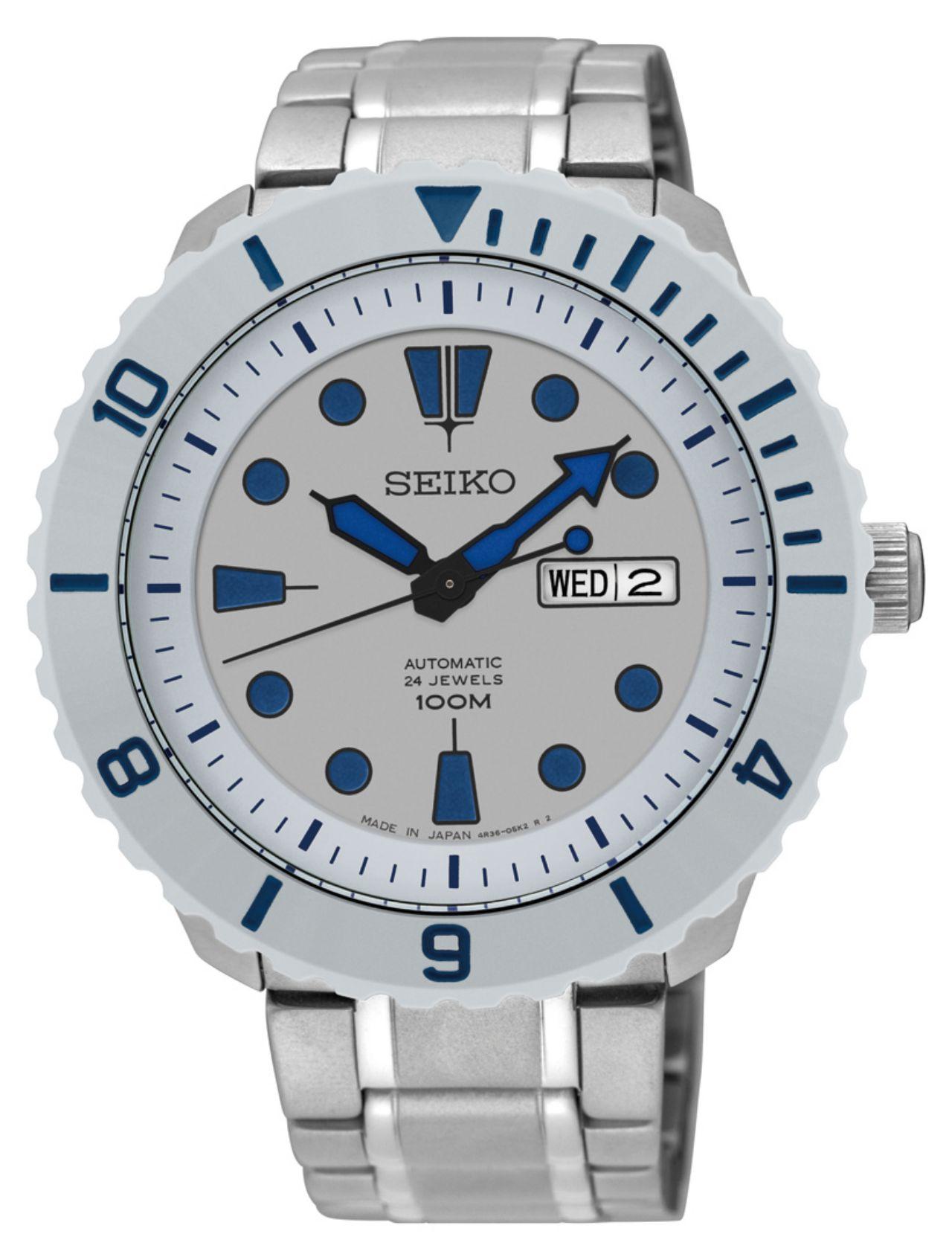 นาฬิกาสัญชาติญี่ปุ่นที่มีความทนทาน ตัวเรือนและสายทำจากสเตนเลสสตีล กระจกหน้าปัดเป็นแบบฮาร์ดเล็กซ์ คริสตัล ผลิตจากแก้วที่มีความแข็งและใส ทนการขูดขีดได้มากกว่าเซลลูลอยด์ ซึ่งเป็นเทคนิคเฉพาะ SEIKO มีระบบจักรกลอัตโนมัติ หรือจะเลือกขึ้นลานผ่านเม็ดมะยมก็ได้เช่นกัน แฮ็คเข็มวินาทีเพื่อเทียบตั้งเวลาได้อย่างแม่นยำ ฝาหลังซีทรูโชว์ให้เห็นกลไกการทำงานสุดคลาสสิก แถมมีประสิทธิภาพกันน้ำได้ลึกถึง 100 เมตร มีให้เลือกช็อปฯ กรอบหน้าปัดสารพัดเฉดสีที่จัดขบวนมาเป็นกองทัพ ได้แก่ สีขาว สีดำ สีเขียวเข้ม สีน้ำเงิน และสีน้ำตาล ราคาเริ่มต้น 12,800 บาท ลดเหลือ 6,400 บาท พิเศษ! มีสายให้เลือกเท่เข้ากับทุกไลฟ์สไตล์