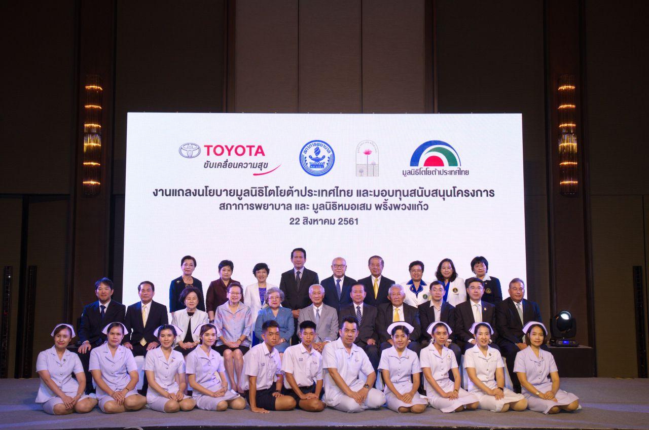มูลนิธิโตโยต้าฯ พร้อมมอบทุน 3.5 ล้านบาท รับสภาวะสังคมสูงวัย และลดปัญหาเด็กและเยาวชน โดยแบ่งเป็นทุนการศึกษาพยาบาล สำหรับสาขาผู้สูงวัย 50 ทุน มูลค่า 2,000,000 บาท โครงการพัฒนาต้นแบบศูนย์พยาบาลเพื่อการดูแลสุขภาพชุมชน 1 ชุมชน มูลค่า 1,000,000 บาท และโครงการพัฒนาศักยภาพเด็กและเยาวชน 4 จังหวัด มูลค่า 500,000 บาท
