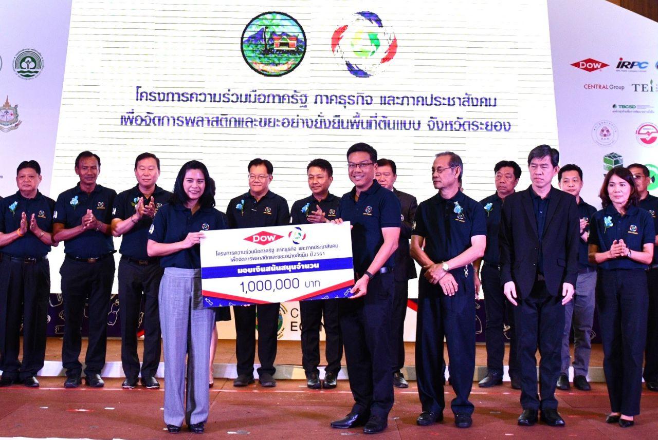 กลุ่มบริษัท ดาว ประเทศไทย โดยนางภรณี กองอมรภิญโญ ผู้อำนวยการฝ่ายองค์กรสัมพันธ์ ร่วมงานพิธีลงนามข้อตกลงความร่วมมือและการประชุมเชิงปฏิบัติการ โครงการความร่วมมือภาครัฐ ภาคธุรกิจ ภาคประชาสังคม เพื่อจัดการพลาสติกและขยะอย่างยั่งยืน พื้นที่ต้นแบบจังหวัดระยอง โดยมีตัวแทนจาก 26 องค์กรเข้าร่วมลงนาม ณ โรงแรมโกลเด้นซิตี้ จังหวัดระยอง เพื่อสร้างความร่วมมือจากทุกภาคส่วน ในการบูรณาการและพัฒนาระบบการจัดการขยะให้มีประสิทธิภาพ โดยส่งเสริมการลดการใช้พลาสติกชนิดครั้งเดียวทิ้ง และการคัดแยกขยะตั้งแต่ต้นทาง เพื่อช่วยให้ขยะแต่ละชนิดสามารถนำไปใช้ต่อให้เกิดประโยชน์ได้อย่างสูงสุด พร้อมมอบเงินสนับสนุนโครงการเป็นจำนวน 1 ล้านบาท แก่นายภราดร จุลชาต ประธานกลุ่มอุตสาหกรรมพลาสติก สภาอุตสาหกรรมแห่งประเทศไทย และประธานคณะทำงานโครงการฯ เพื่อสนับสนุนการขับเคลื่อนการลดปริมาณขยะพลาสติกในทะเลอย่างน้อยร้อยละ 50 ในระยะเวลา 10 ปี พร้อมกระตุ้นแนวคิดเศรษฐกิจหมุนเวียน การผลิตสินค้าหรือผลิตภัณฑ์ที่สามารถนำกลับมาใช้ได้อีก เพื่อการใช้ทรัพยากรที่ได้อย่างมีประสิทธิภาพและคุ้มค่าที่สุด รวมไปถึงให้ความสำคัญกับการจัดการของเสียที่มาจากการผลิตและการบริโภค