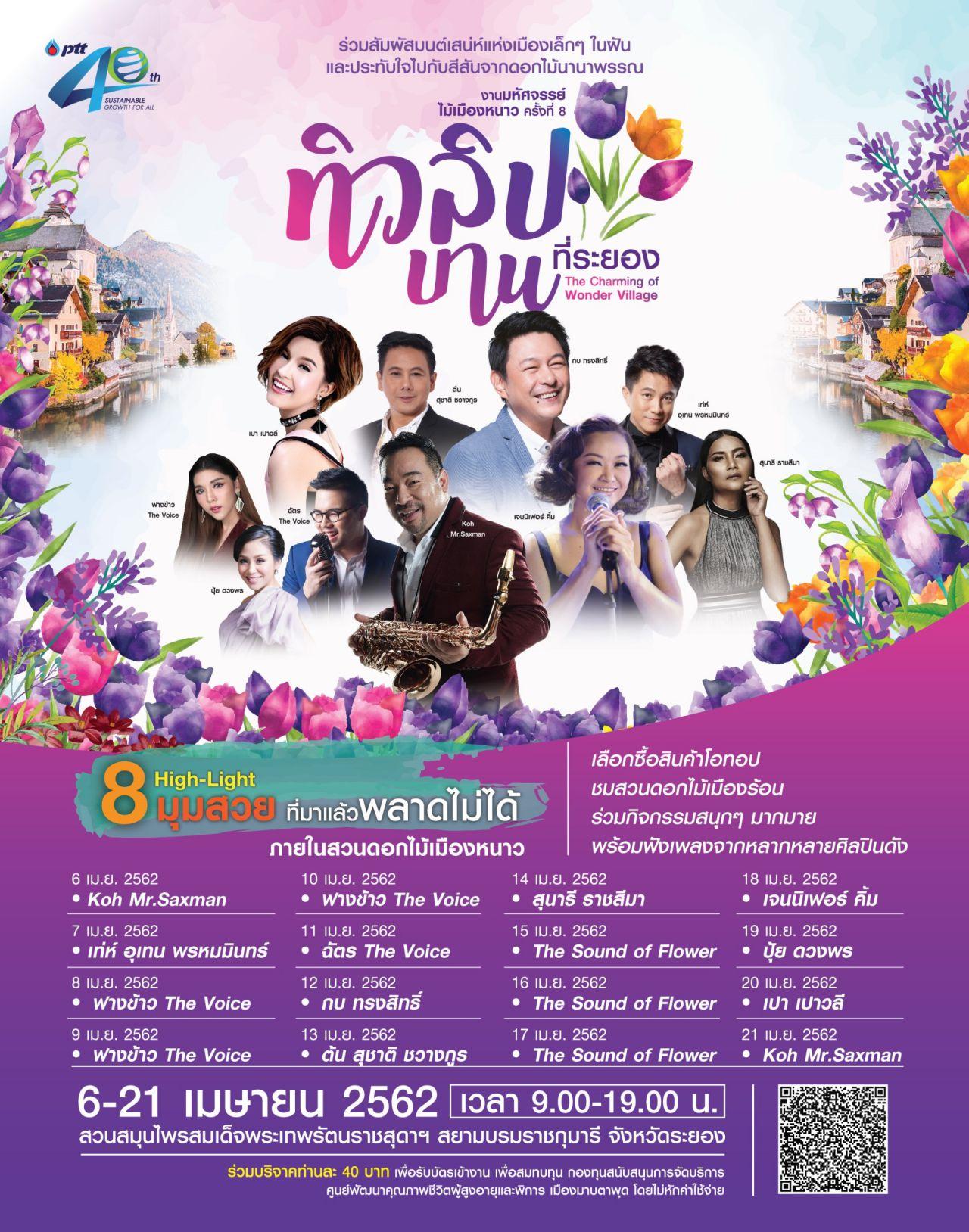 เปิดงานมหัศจรรย์ไม้เมืองหนาว ครั้งที่ 8 : ทิวลิปบานที่ระยอง 2562 ณ สวนสมุนไพรสมเด็จพระเทพรัตนราชสุดาฯ สยามบรมราชกุมารี จ.ระยอง เพื่อเชิญชวนพี่น้องชาวไทยพักผ่อนในช่วงเทศกาลสงกรานต์ ภายใต้แนวคิด “The Charming of Wonder Village” มนต์เสน่ห์หมู่บ้าน ในฝัน ท่ามกลางทุ่งทิวลิปและดอกไม้เมืองหนาวอันสวยงามตระการตา โดยเปิดให้ประชาชนร่วมชมงานได้ตั้งแต่วันที่ 6 - 21 เมษายน 2562