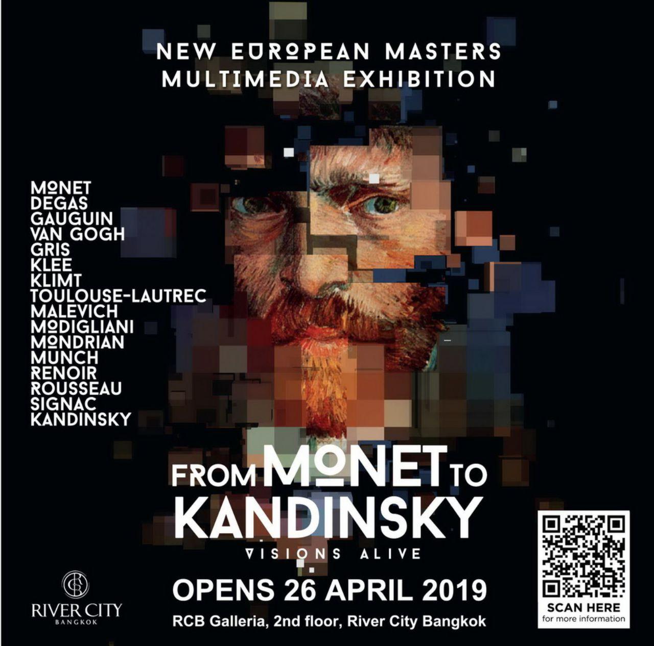 ริเวอร์ ซิตี้ แบงค็อก ศูนย์รวมงานศิลปะและวัตถุโบราณชั้นเยี่ยมของเอเชีย บนฝั่งแม่น้ำเจ้าพระยา เอาใจคนรักศิลปะทุกเพศวัยด้วยการจัดนิทรรศการมัลติมีเดียระดับโลกซึ่งได้รับผลตอบรับอย่างดีมาแล้วที่กรุงเบอร์ลินและมอสโก และกำลังจะจัดแสดงเป็นครั้งแรกในเอเชียที่กรุงเทพฯ ภายใต้ชื่อ FROM MONET TO KANDINSKY (ฟร็อม โมเน่ต์ ทู คันดินสกี้) และ ITALIAN RENAISSANCE (อิตาเลียน เรอเนสซ็องส์) โดยทั้งสองนิทรรศการจะนำเสนอด้วยการฉายโปรเจ็กเตอร์บนกำแพงสูง 3 เมตรบนพื้นที่นับพันตารางเมตรของอาร์ซีบี แกลเลอเรีย (RCB Galleria) ชั้น 2 ซึ่งเป็น Contemporary Art Space ของริเวอร์ ซิตี้ แบงค็อก โดยนิทรรศการ FROM MONET TO KANDINSKY เปิดให้บุคคลทั่วไปได้เข้าชมตั้งแต่วันที่ 26 เมษายน – 31 กรกฎาคม ต่อด้วยนิทรรศการ ITALIAN RENAISSANCE ตั้งแต่วันที่ 8 สิงหาคม – 31 ตุลาคม เปิดให้ชมทุกวัน ตั้งแต่เวลา 10.00-22.00 น. ซื้อบัตรได้ทาง ZipEvent เพียงคลิก https://bit.ly/2UfjVze