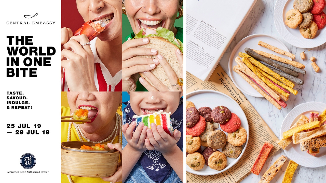 ในปีนี้ ศูนย์การค้าเซ็นทรัล เอ็มบาสซี และห้างเซ็นทรัล ชิดลม ฟู้ดเดสทิเนชั่นแถวหน้าของคนกรุงเทพฯ และนักท่องเที่ยวจากทั่วโลก จัดงาน “The World in One Bite” (เดอะ เวิลด์ อิน วัน ไบท์) ชวนอร่อยเต็มอิ่มกับ 50 ภัตตาคารและร้านอาหารนานาชาติชื่อดัง พร้อมรวม 100 ป๊อปอัพคาเฟ่สุดฮิป ร้านอาหารสุดโปรด และร้านค้าจากเซเลบริตี้ชื่อดัง ที่คัดสรรเมนูพิเศษอร่อยเด็ดมาเสิร์ฟภายในงานนี้ ที่บริเวณชั้น 2 - 5 และ OPEN HOUSE ชั้น 6 ตลอดจนมาแซ่บซี้ดกับกับหลากหลายเมนูอาหารทะเล ‘Fresh from the Sea ซีฟู้ดสดทุกคำ น่าจดจำทุกรสชาติ!’ ที่ Eathai (อีทไทย) หรือจะอร่อยเลิศรสกับเมนูพิเศษจากห้องอาหาร เอ็มบาสซี รูม และ เพ้นท์เฮ้าส์ บาร์ แอนด์ กริลล์ ที่โรงแรมพาร์ค ไฮแอท กรุงเทพฯ และอร่อยปิดท้ายกับเซตขนมหวาน ‘Sweet Bite’ ที่ FoodLoft (ฟู้ดลอฟท์) ชั้น 7 ห้างเซ็นทรัลชิดลม อีกทั้งเพลิดเพลินกับกิจกรรมต่างๆ อาทิ ฟู้ดเทสติ้ง เวิร์กช็อปสำหรับเด็กและผู้ใหญ่ พร้อมโปรโมชั่นพิเศษและข้อเสนอจากบัตรเครดิตชั้นนำมากมาย ระหว่างวันที่ 25-29 ก.ค. 62