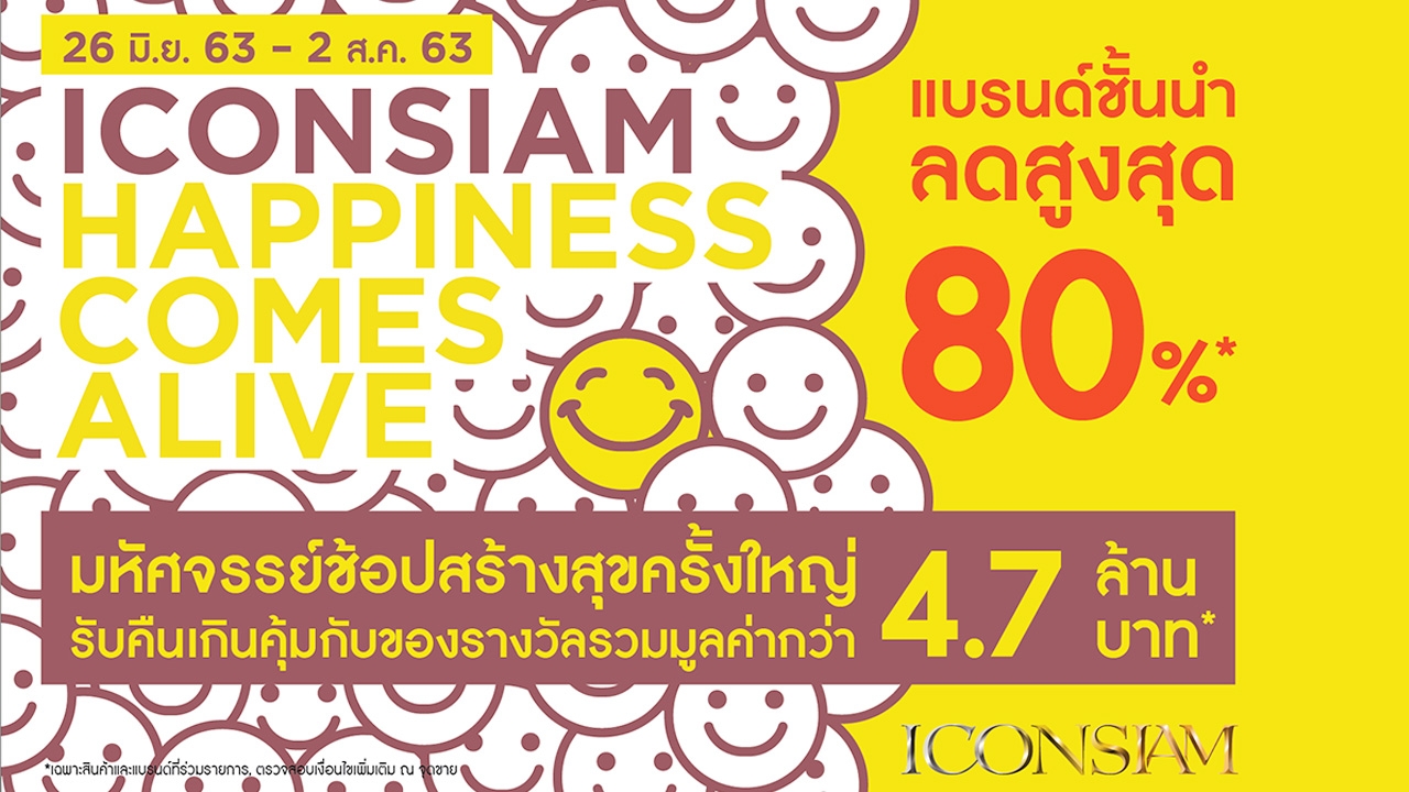 ไอคอนสยาม แลนด์มาร์กสำคัญของไทยริมแม่น้ำเจ้าพระยา จัดแคมเปญ “ICONSIAM Happiness Comes Alive” มอบประสบการณ์ความสุขและรอยยิ้มให้ทุกคน ยกขบวนแบรนด์ชั้นนำลดราคาครั้งใหญ่สูงสุด 80% พร้อมของรางวัลและสิทธิประโยชน์แบบเกินคุ้มมูลค่ารวมกว่า 4.7 ล้านบาท ตั้งแต่ 26 มิถุนายน – 2 สิงหาคม ศกนี้