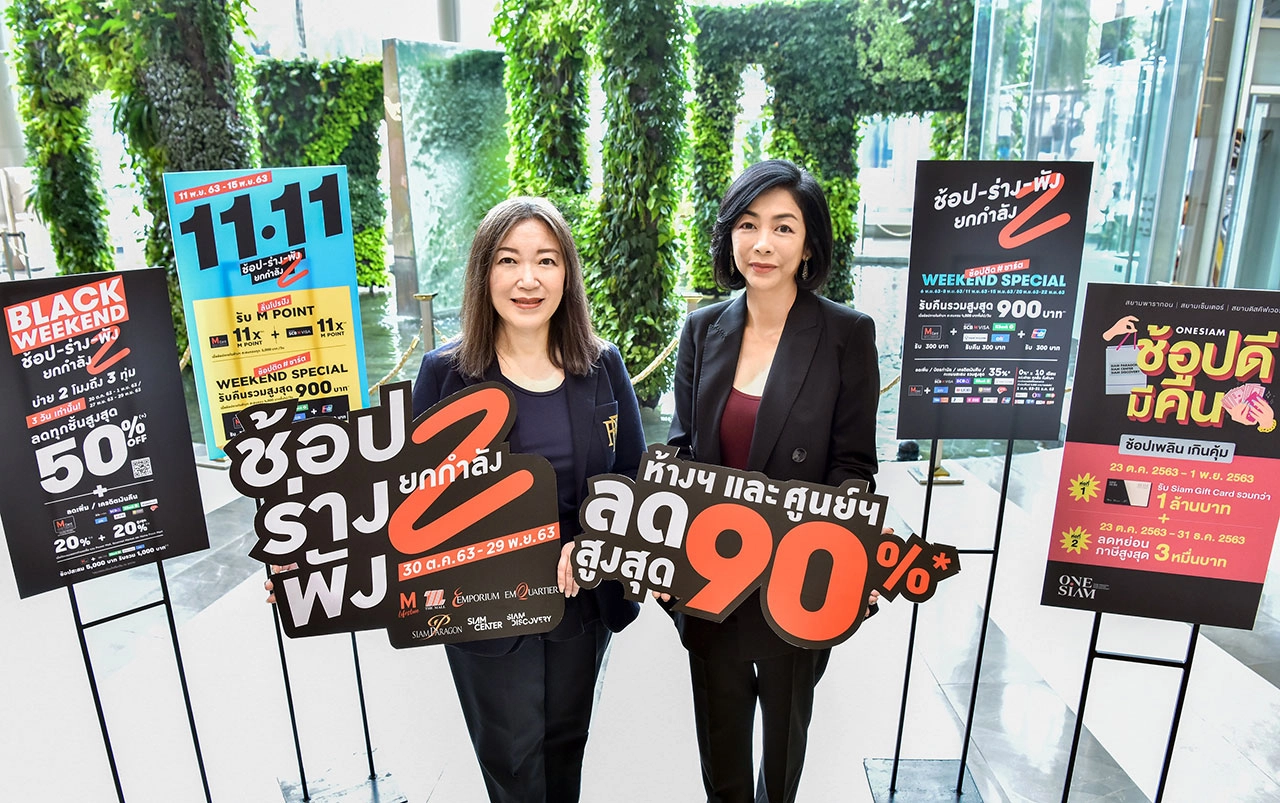 จากมติคณะรัฐมนตรีอนุมัติมาตราการช้อปดีมีคืน กระตุ้นการบริโภคภายในประเทศ สนับสนุนผู้ประกอบการที่อยู่ในระบบภาษี โดยลดหย่อนภาษีบุคคลธรรมดาในปีภาษี 2563 สำหรับผู้ที่ซื้อสินค้าและบริการตามจำนวนจ่ายจริงแต่รวมกันไม่เกิน 30,000 บาทต่อคน โดยสามารถนำใบกำกับภาษีจากผู้ประกอบการ ตั้งแต่วันนี้ถึง 31 ธันวาคม 2563 มาใช้เป็นหลักฐานได้นั้น บริษัทฯ ได้เตรียมความพร้อมเพื่อขานรับนโยบายของภาครัฐเพื่อช่วยกระตุ้นการจับจ่ายอย่างเต็มที่ โดยจัดแคมเปญโปรโมชั่นมามอบสิทธิประโยชน์และเพิ่มมูลค่าให้การช้อปปิ้งแก่ลูกค้าแบบเต็มแม็กซ์ กับแคมเปญ “มหกรรม ช้อป ร่าง พัง ยกกำลัง 2” ระหว่างวันที่ 30 ต.ค. - 29 พ.ย. 63 ที่จะเพิ่มมูลค่าในการจับจ่ายมากขึ้นกว่าเดิม ด้วยมหกรรมขบวนสินค้าจากร้านค้าแบรนด์ดังที่พร้อมใจลดราคาพิเศษสูงสุด 90%, ช้อปหรือทานอาหารครบตามเงื่อนไขรับทันที Siam Gift Card มูลค่าสูงสุด 1,000 บาท และทุกวันศุกร์ เสาร์ อาทิตย์ กระหน่ำโปรโมชั่นเพิ่มเติม ทั้ง buy 1 get 1 free, สินค้า One Price และ ลดพิเศษแบบออนท็อป นอกจากนี้ ยังมีสิทธิพิเศษจากบัตรเครดิตที่ร่วมรายการอีกมากมาย