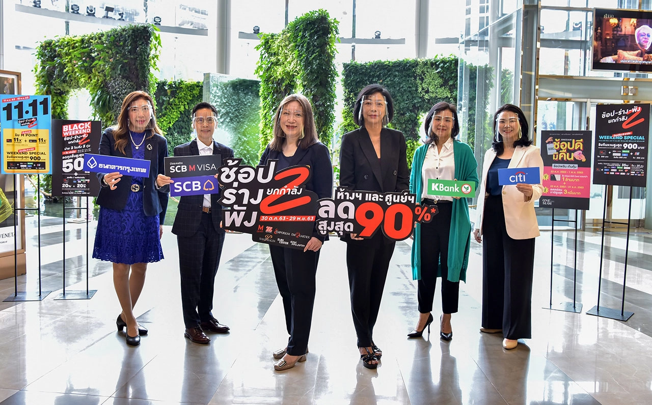 • ศูนย์การค้า ดิ เอ็มโพเรียม และ ดิ เอ็มควอเทียร์ ร้านค้าชั้นนำในศูนย์การค้าร่วมจัดโปรโมชั่นลดสูงสุด 90% เมื่อช้อปภายในศูนย์การค้าครบ 50,000 บาท เลือกรับของรางวัลมากมาย ช้อป 200,000 บาท รับบัตรกำนัลศูนย์ฯ 3,000 บาท, ช้อป 500,000 บาทรับบัตรกำนัลศูนย์ฯ 18,000 บาท พร้อมรับสิทธิเงินคืนสูงสุด 20% จากบัตรเครดิตชั้นนำ พิเศษเฉพาะบัตรเครดิตกสิกรไทย ผ่อน 0% นาน 10 เดือน ทุกชิ้น ทุกแบรนด์ ทั้ง ศูนย์ฯ หรือช้อปครบตามเงื่อนไข รับบัตรกำนัลศูนย์ฯ สูงสุด 2,000 บาท สำหรับสุดยอดนักช้อป 5 อันดับแรก (ยอดสะสม 2 ล้านบาทขึ้นไป) รับสิทธิพักที่ Yu Kiroro ที่ Kiroro Resort ฮอกไกโด ประเทศญี่ปุ่น 4 วัน 3 คืน พร้อมกิจกรรม Full board ski activity มูลค่ากว่า 81,000 บาท/วันที่ 6-8 พ.ย.63, 11-15 พ.ย. 63, 22-22 พ.ย. 63 เวลา 12.00 – 15.00 น. เฉพาะบัตรกสิกรไทยช้อป 9,000 ต่อเซลล์สลิป รับบัตรกำนัลศูนย์ฯ 1,000 บาท / เมื่อรับประทานอาหารครบ 1,000 บาท รับบัตรกำนัลรับประทานอาหาร 100 บาท และสำหรับลูกค้าบัตรเครดิต SCB M รับบัตรกำนัลรับประทานอาหาร เพิ่ม 200 บาท, บัตรเครดิต TMB & TBANK รับบัตรกำนัลรับประทานอาหารเพิ่มสูงสุด 300 บาท