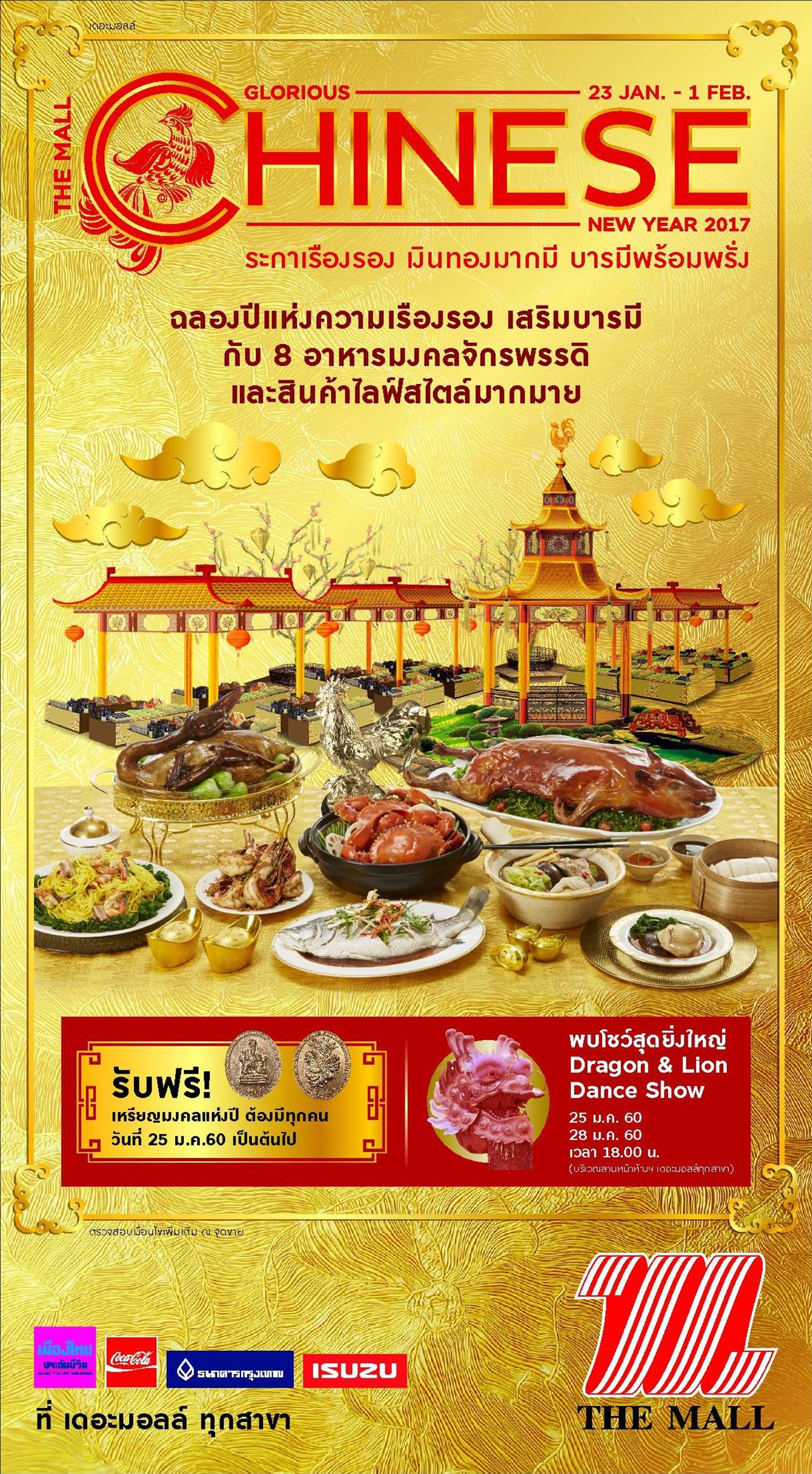 วันที่ 23 ม.ค. - 3 ก.พ. 2560 ชวนมาเลือกช็อปอาหารมงคลในวันตรุษจีนที่กำลังจะถึงนี้ “THE MALL GOLDEN SHINE MARKET” ณ บริเวณอีเวนต์ ฮอลล์ เดอะมอลล์ทุกสาขา
