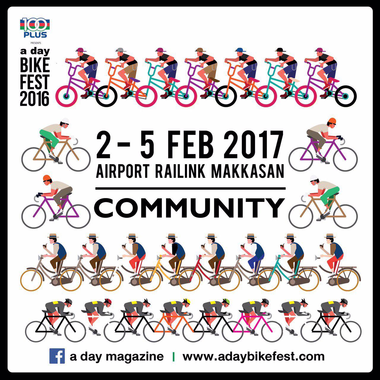วันที่ 2 - 5 ก.พ. 2560 ชวนมาชิลในงานใหญ่ประจำปีของนักปั่น “100Plus Presents a day BIKE FEST 2016” (แต่เลื่อนมาจัด 2017) ณ สถานีรถไฟฟ้าแอร์พอร์ต เรล ลิงก์ มักกะสัน ภายในงานพบกับ คอมมูนิตี้แบรนด์จักรยานชั้นนำกว่า 1,000 รายการ มากกว่า 200 ร้านค้าที่มาพร้อมโปรโมชั่นสุดพิเศษ