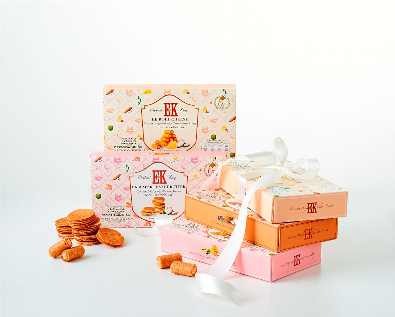 ฉีกกฎทองม้วนแบบเดิมๆ กับ “EK Elephant King” ทองม้วนสอดไส้เจ้าแรกของไทย ที่มีสูตรอร่อยลับเฉพาะ กับรสชาติที่คัดสรรมาให้คุณได้ลิ้มลองถึง 10 รสชาติ ได้แก่ พีนัทบัตเตอร์, ครีมชีส, ครีมวานิลลาทุเรียน, ช็อกโกแลต, สตรอเบอรี่, ส้ม, มะนาว, มังคุด, และมะม่วง มีให้เลือกอร่อยทั้งแบบโรลสอดไส้ (กล่องละ 89 บาท) และแบบแผ่นสอดไส้ (กล่องละ 109 บาท) พิเศษสุด! ต้อนรับเทศกาลตรุษจีน กับแพ็กเกจเฮง เฮง เฮง กับทองม้วนแสนอร่อย ที่ดีทั้งความหมาย เป็นเลิศทั้งรสชาติ หนึ่งแพ็กมี 4 กล่อง 4 รส ส้ม เนยถั่ว ช็อกโกแลต และชีส
