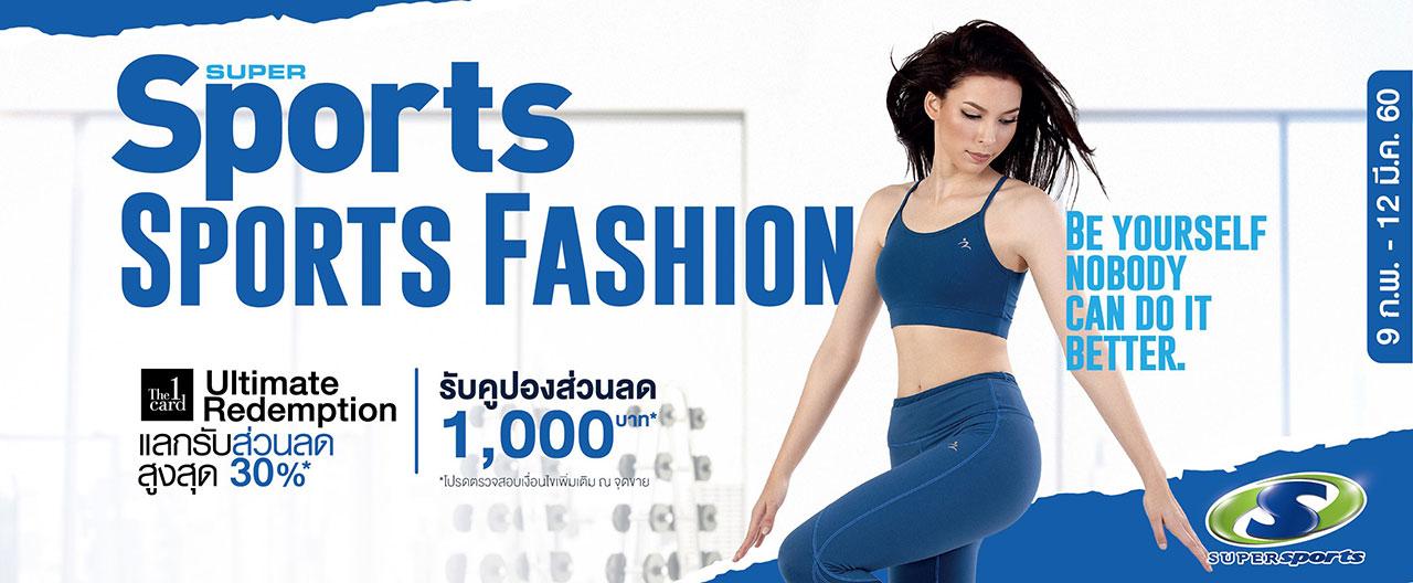 วันนี้ - 12 มี.ค. 2560 ชวนมาช็อปเสื้อผ้ากีฬาในราคาดีลสุดคุ้ม “Supersports Sports Fashion” ณ Supersports ในศูนย์การค้าใหญ่ทั่วไป พบสินค้ากีฬาสไตล์แฟชั่น และสินค้ากีฬาราคาพิเศษอีกหลายรายการ รับคูปองส่วนลด เมื่อช็อปครบ 1,000 บาทรับทันที