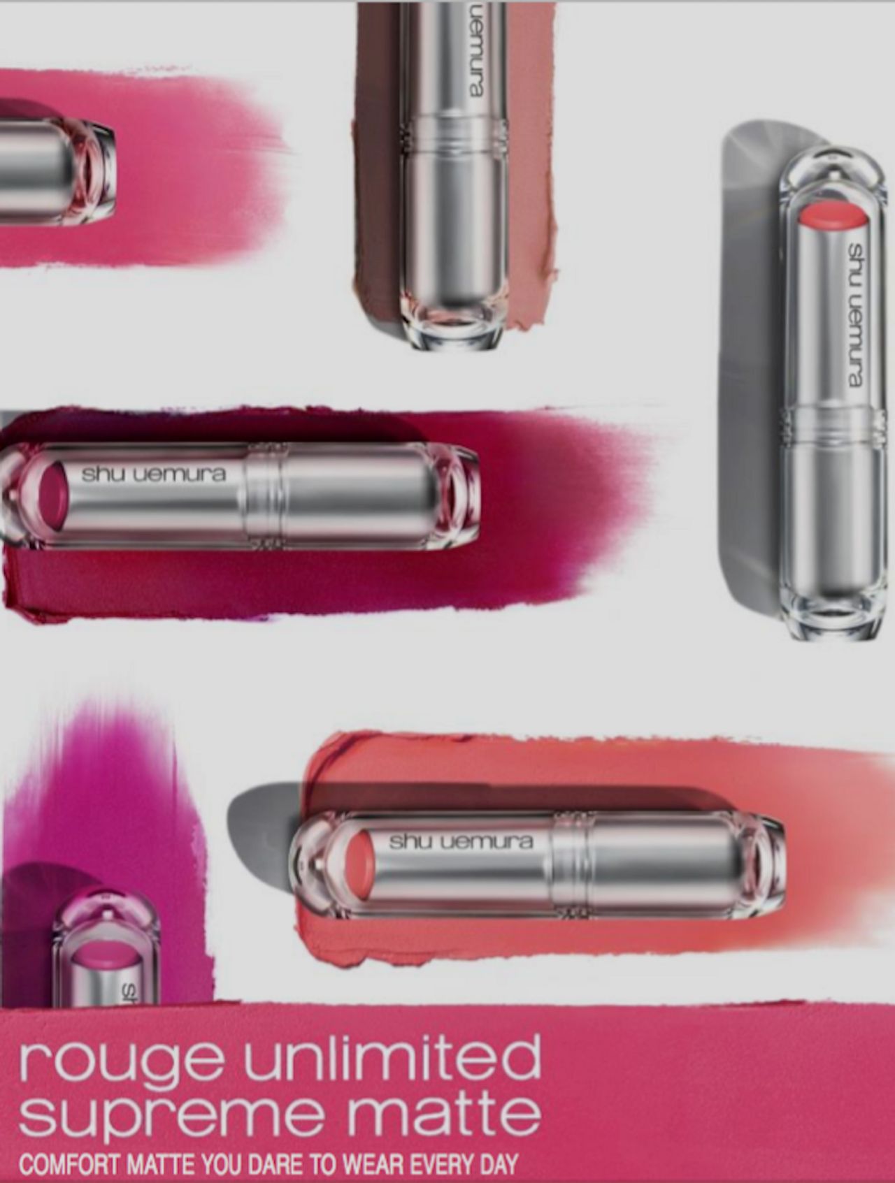 วันนี้ชวนสาวๆ มาช็อปลิปสติกเนื้อแมทต์ สีชัด ติดแน่น ทนนาน “rouge unlimited supreme matte shu uemura” ณ เคาน์เตอร์ shu uemura ทุกสาขา เป็นลิปสติกเนื้อแมทต์ที่ติดทนทาน เอาอยู่ทั้งวัน มีหลายสีให้เลือก แถมเนื้อลิปเป็นเนื้อครีมนุ่มพิเศษ เป็นคอลเลกชั่นใหม่ล่าสุดที่น่าลอง มีให้เลือกถึง 24 สี แต่ขอมาแนะนำ 4 สี เช่น