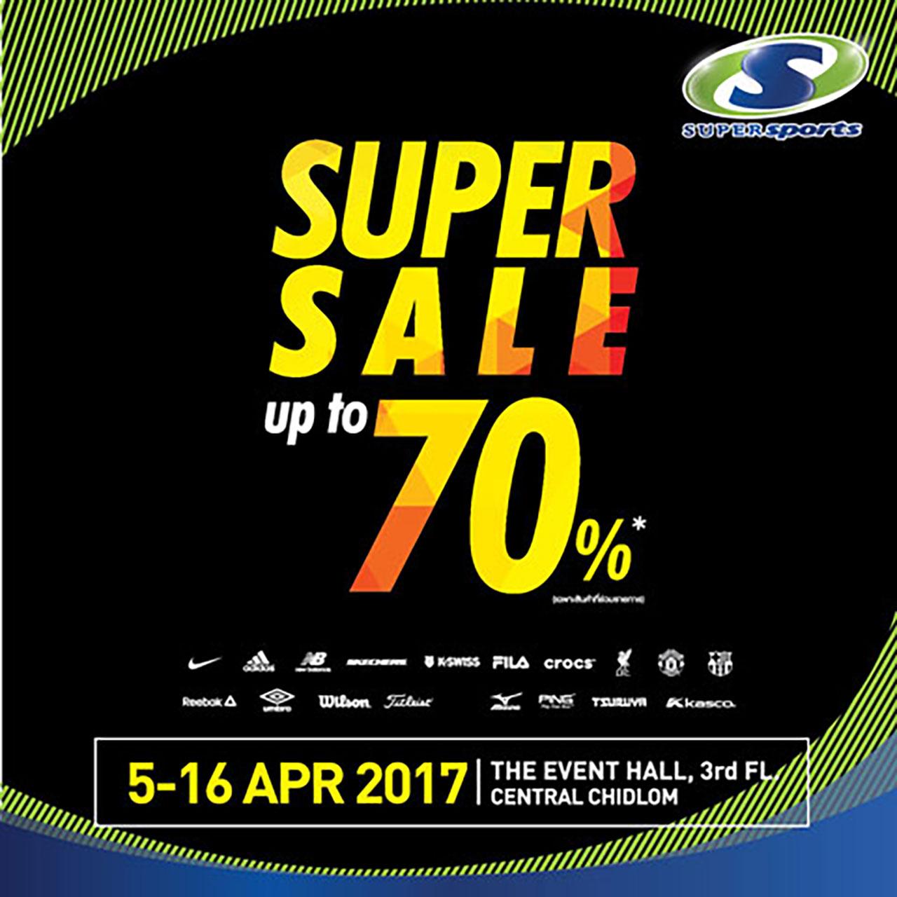 กลับมาอีกครั้งกับงาน Supersports Super Sale ลดสูงสุด 70% กับขบวนสินค้ากีฬา หลากหลายแบรนด์ดัง เสื้อผ้า รองเท้า และอุปกรณ์กีฬา ย้ำอีกครั้งว่าลดราคาสูงสุด 70% เริ่มวันนี้ – 16 เมษายน 60 ณ Central Chidlom