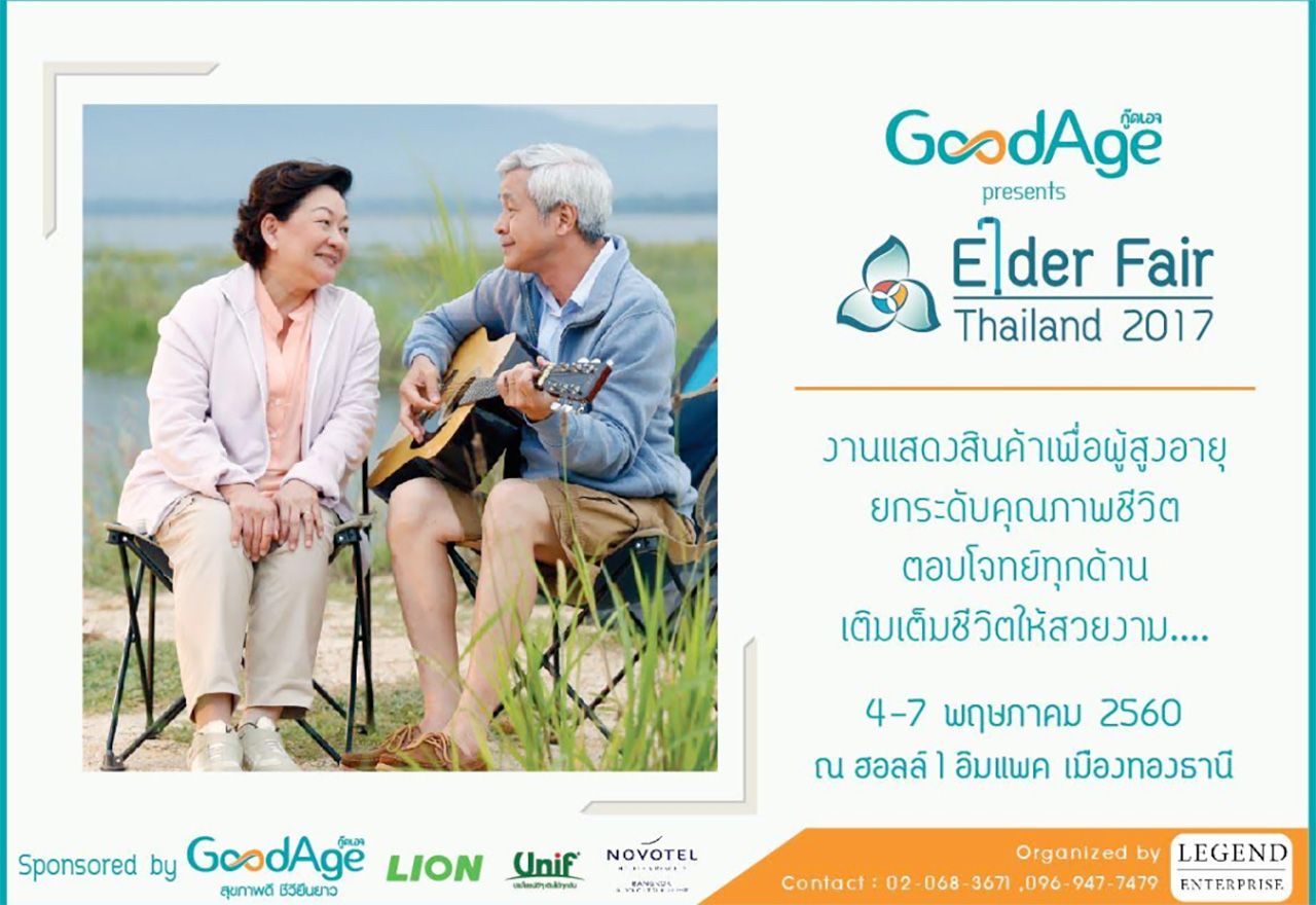 สำหรับการจัดมหกรรมเพื่อคนสูงอายุครั้งแรกประเทศไทยที่มีมิติครบถ้วน ภายใต้ชื่องาน Elder Fair Thailand 2017 มีแนวคิดเติมเต็มชีวิตให้สวยงาม พัฒนาชีวิตรอบด้านให้มีคุณภาพ จุดประสงค์ในการจัดมหกรรมเพื่อคนสูงอายุรองรับการเติบโตมากขึ้นทุกปี กลุ่มเป้าหมายสำหรับงานนื้คือกลุ่มคนวัยทำงาน กลุ่มครอบครัว และกลุ่มผู้สูงอายุ ภายในงานจะเป็นงานที่มีประโยชน์ตอบโจทย์ความต้องการจำเป็นในชีวิตประจำวัน โดยงานจะจัดขึ้นระหว่าง 4-7 พฤษภาคม 2560 ณ ฮอลล์ 1 เมืองทองธานี ตั้งแต่ 10.00-21.00 น. พื้นที่จัดงานประมาณ 5,000 ตารางเมตร ทุกวัน ภายในงานมีจุดเด่นนำนวัตกรรมหุ่นยนต์ดูแลผู้สูงอายุ workshop ต่างๆ อาทิ อาหารเพื่อสุขภาพ การดูแลตนเอง และการให้ความรู้ด้านต่างๆ แก่กลุ่มผู้สูงอายุ เป็นต้นนอกจากนี้แบ่งออกเป็น 8 โซน อาทิ โซนเทคโนโลยี, โซนสุขภาพ, โซนฟู้ดคอร์ด, โซนคลับคอมมูนิตี้, โซนเซเลบริตี้ เป็นต้น