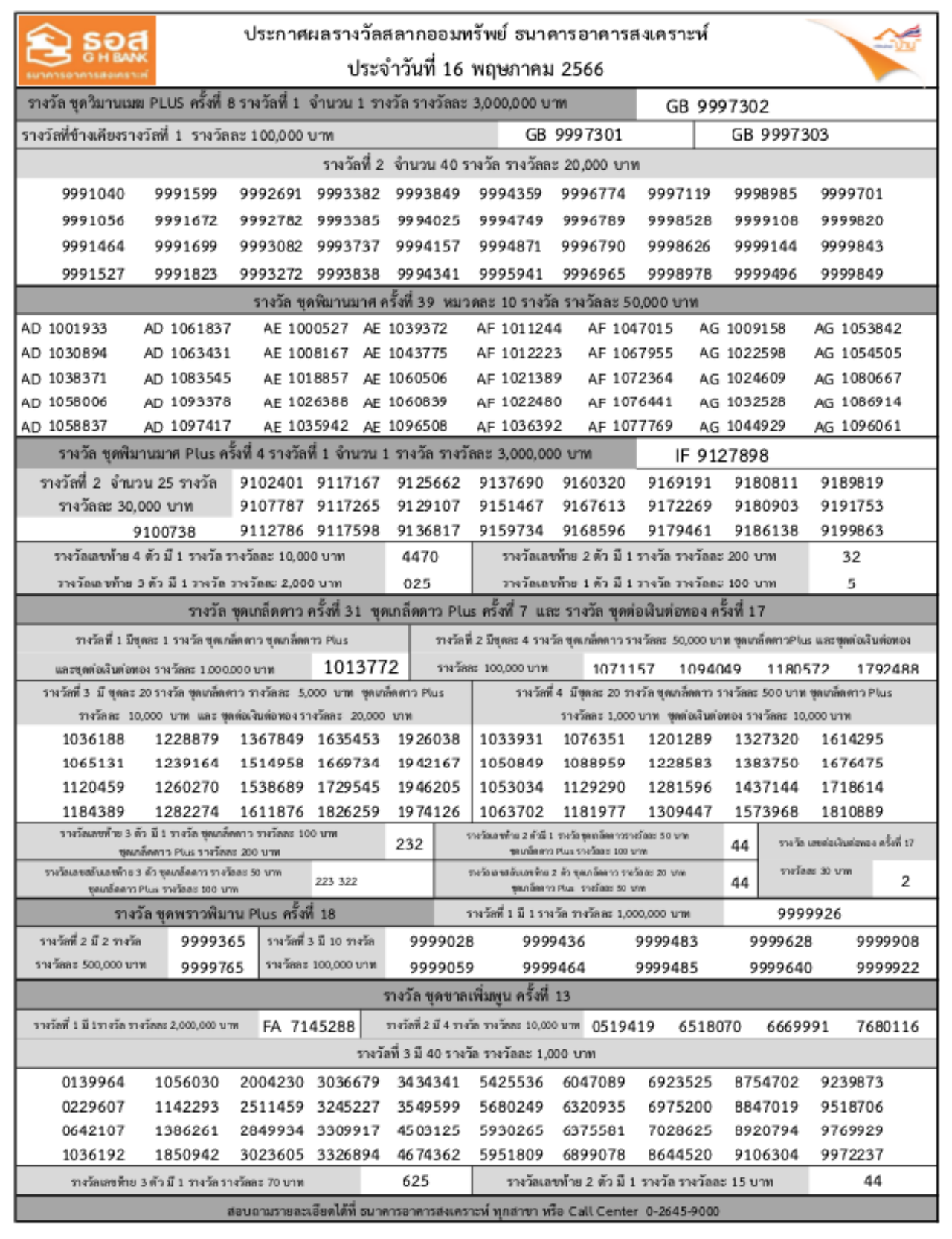 อย่างไรก็ตาม โปรดตรวจสอบความถูกต้องกับธนาคารอาคารสงเคราะห์ (ธอส.) อีกครั้ง สำหรับผู้ที่สนใจสามารถซื้อสลากออมทรัพย์ ธอส. ได้ที่ Mobile Application GHB ALL หรือที่สาขาธนาคารทุกแห่งทั่วประเทศ.