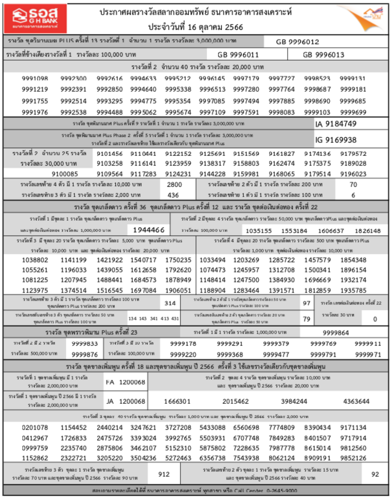 อย่างไรก็ตาม โปรดตรวจสอบความถูกต้องกับธนาคารอาคารสงเคราะห์ (ธอส.) อีกครั้ง สำหรับผู้ที่สนใจสามารถซื้อสลากออมทรัพย์ ธอส. ได้ที่ Mobile Application GHB ALL หรือที่สาขาธนาคารทุกแห่งทั่วประเทศ.