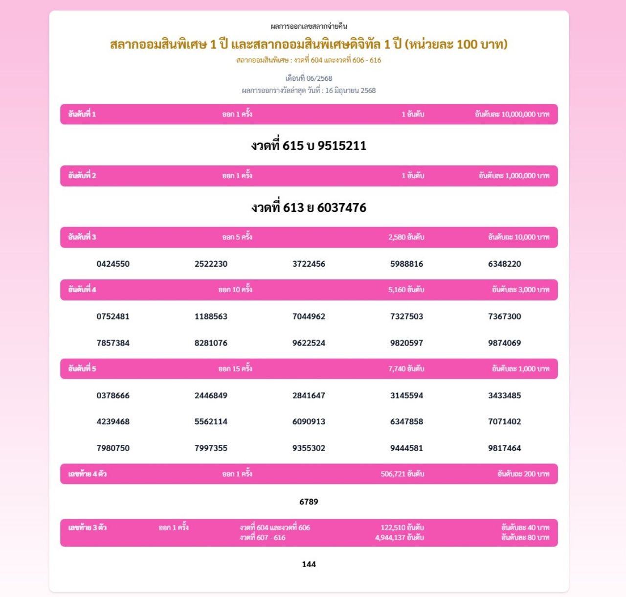 ผลสลากออมสิน "พิเศษ 1 ปี" งวดวันที่ 16 มิถุนายน 2568