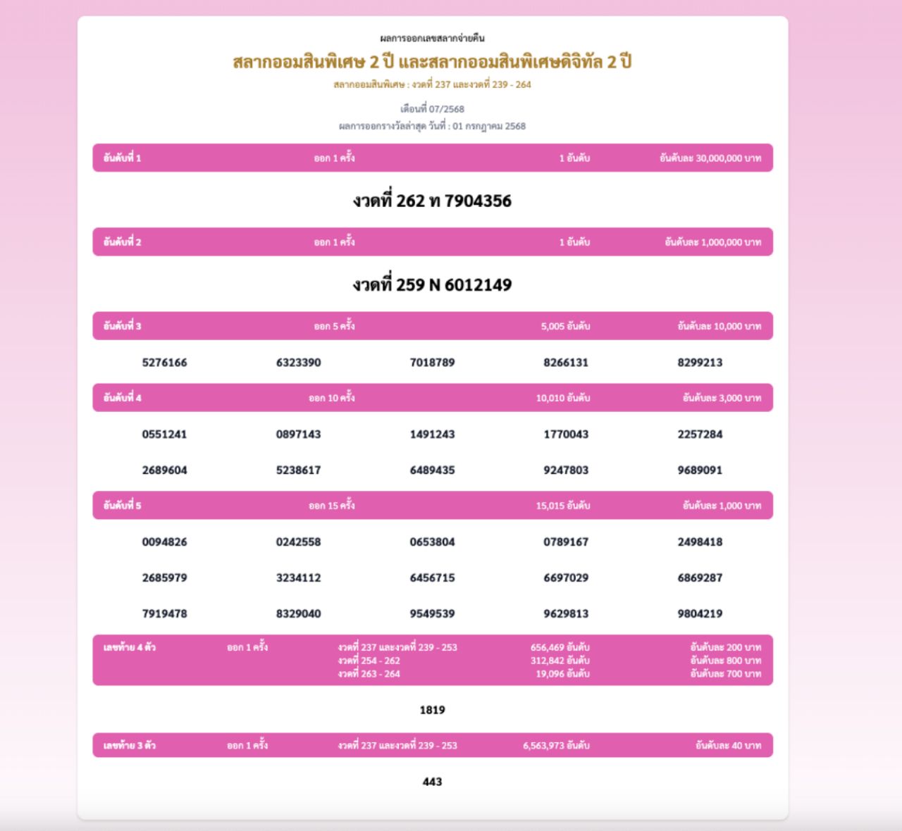 ผลสลากออมสิน "พิเศษ 2 ปี" และ "พิเศษดิจิทัล 2 ปี" งวดวันที่ 1 กรกฎาคม 2568