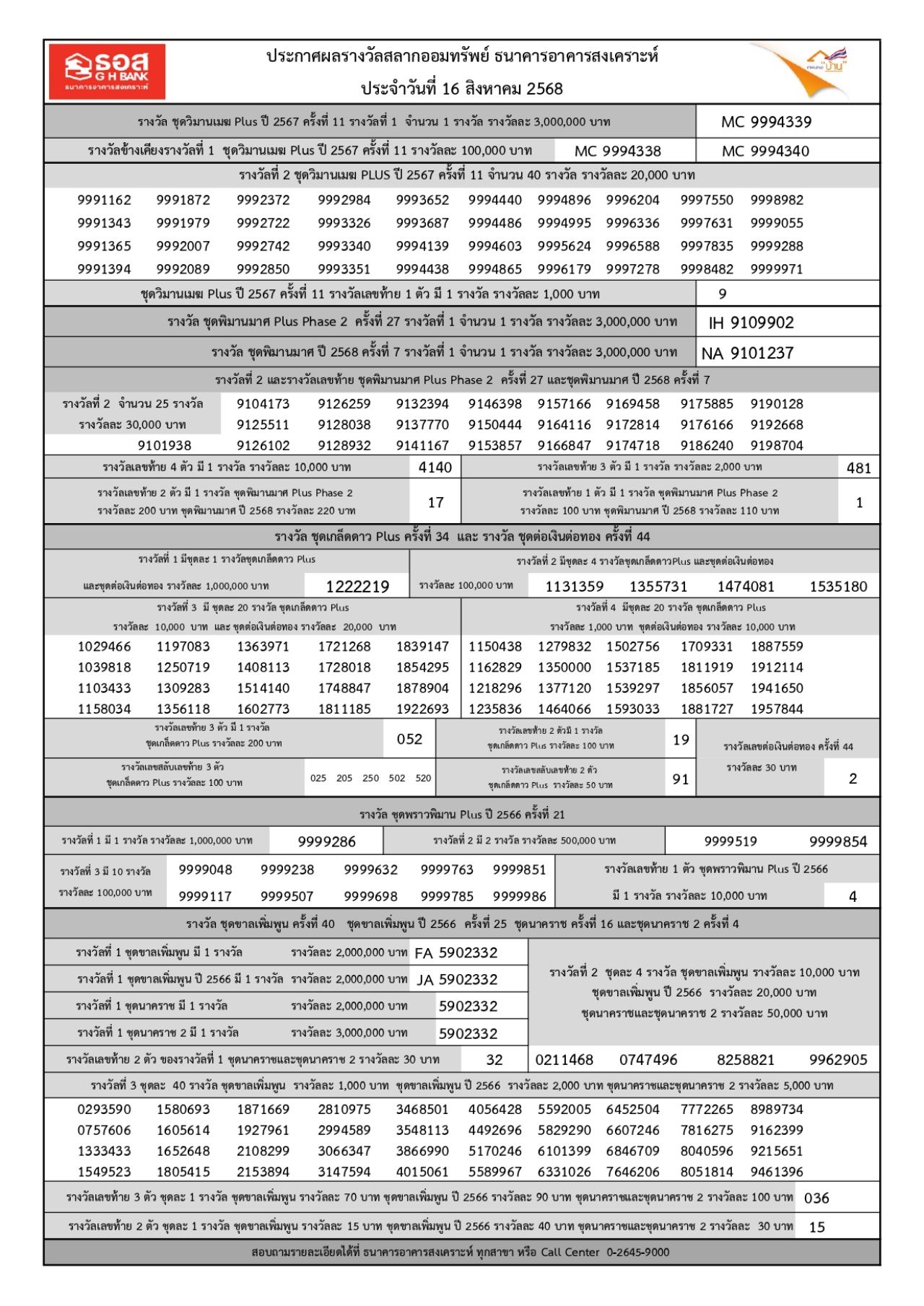 อย่างไรก็ตาม โปรดตรวจสอบความถูกต้องกับธนาคารอาคารสงเคราะห์ (ธอส.) อีกครั้ง สำหรับผู้ที่สนใจสามารถซื้อสลากออมทรัพย์ ธอส. ได้ที่ Mobile Application GHB ALL หรือที่สาขาธนาคารทุกแห่งทั่วประเทศ.