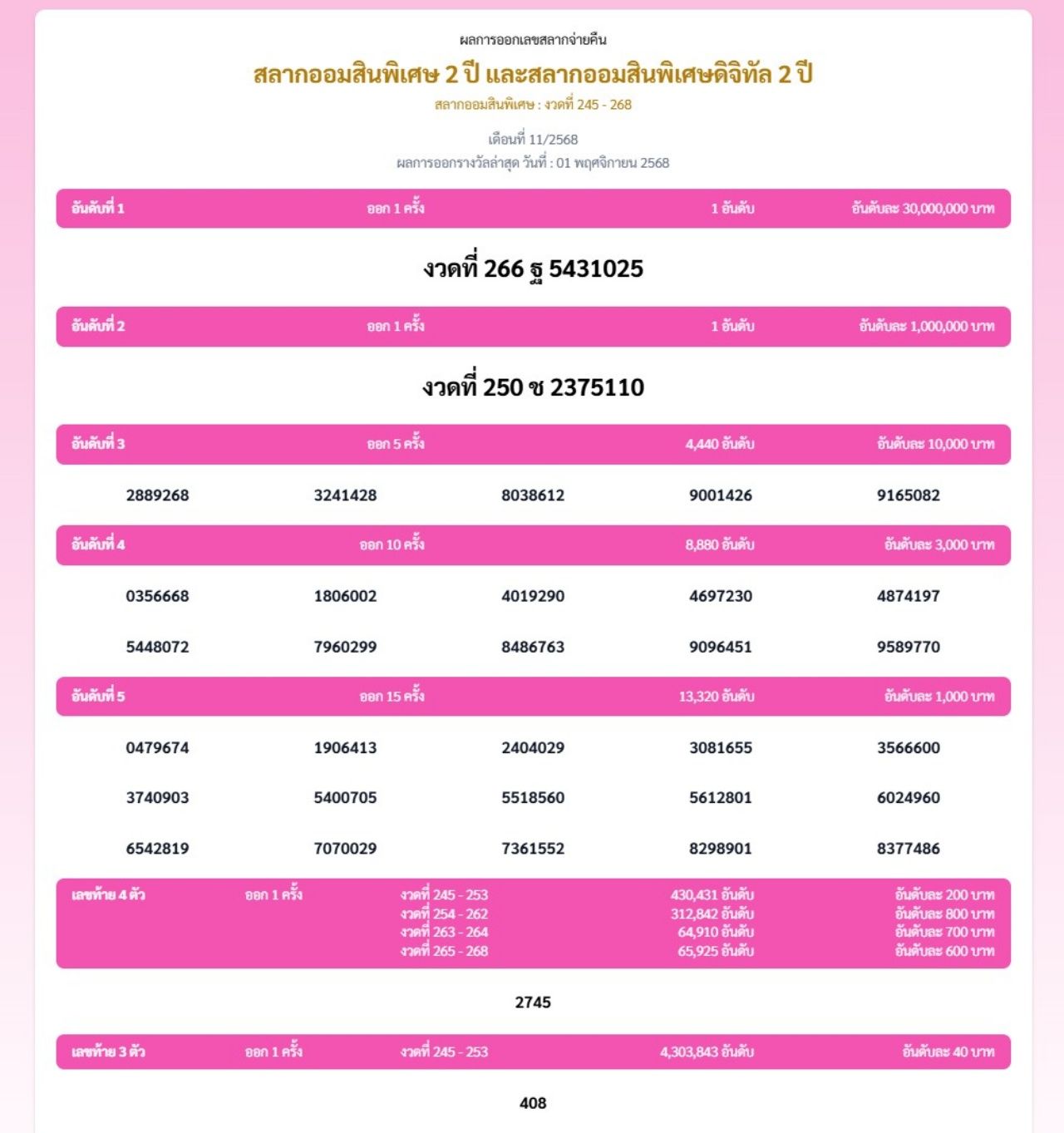 ผลสลากออมสิน "พิเศษ 2 ปี" และ "พิเศษดิจิทัล 2 ปี" งวดวันที่ 1 พฤศจิกายน 2568