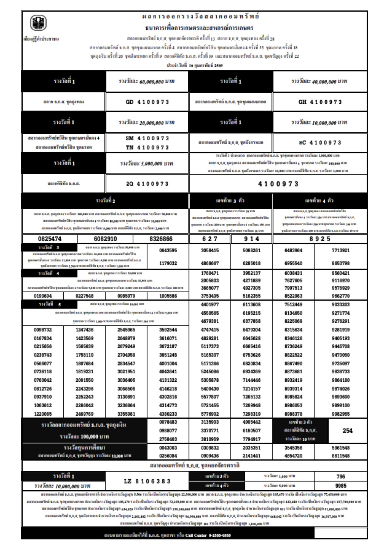 ผลสลาก ธ.ก.ส. งวดวันที่ 16 กุมภาพันธ์ 2569