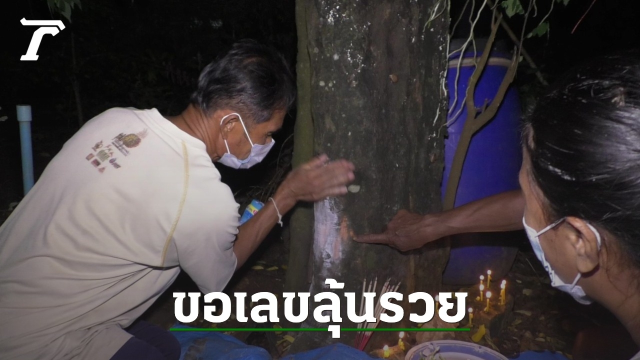 เมื่อเดินทางไปตรวจสอบ พบกับ นายวันชัย ไกรมะเริง อายุ 57 ปี เจ้าของบ้าน พร้อมด้วยเพื่อนบ้าน ต่างกำลังนำดอกไม้ ธูปเทียน พร้อมเครื่องเซ่นไหว้ แต่งขันธ์ 5 ประกอบพิธีขอหวยตามความเชื่อโบราณ ที่ใต้ต้นมะเฟืองยักษ์ขนาดใหญ่ เส้นผ่าศูนย์กลาง ราว 60 ซม. อายุกว่า 50 ปี พร้อมทั้งใช้แป้งฝุ่นลูบเบาๆ ที่โคนต้น และใช้แสงไฟส่องหาตัวเลข บางคนก็นำโทรศัพท์มือถือขึ้นมาถ่ายรูป หรือเปิดกล้องส่องหาตัวเลข โดยส่วนใหญ่เห็นคล้ายกัน ได้เลข 987 64 25 70 และใกล้เคียง ต่างจดใส่กระดาษ หวังนำไปเสี่ยงโชคเสี่ยงดวง ในช่วงโค้งสุดท้ายก่อนหวยออกต่อไป