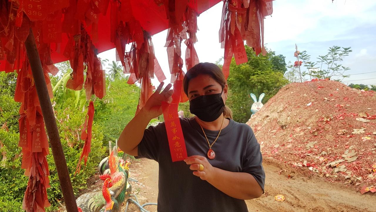 ทั้งนี้ ยังเผยอีกว่าหลังจากนำของมาแก้บนให้แล้วครั้งนี้ยังอธิษฐานไว้กับ ไอ้ไข่ สามนคร และกุมารน้องเก้าเลิฟๆ อีกว่า ขอเลขเด็ดอีกครั้งจากหางประทัดที่นำมาจุดถวายแก้บน 40,000 นัด หากงวดนี้ได้โชคใหญ่อีก จะนำหมูหันมาถวายให้ 2 เท่าและยังจะพาครอบครัวมาเปิดโรงครัวทำอาหารเลี้ยงคนที่มาทำบุญที่วัดสว่างอารมณ์ ทั้งคาวหวานให้ทานกันอย่างอิ่ม ก่อนที่จะไปจุดประทัดเสียงดังสนั่นหวั่นไหวไปทั่ว และนำหางประทัดมาโชว์ให้ดูได้หมายเลข 146 และ 36 โดยขอตัวเพื่อจะไปหาซื้อลอตเตอรี่ตามแผงจะเหมาหากแผงไหนในวัดมีซื้อหมด ก่อนเดินทางกลับบ้าน.