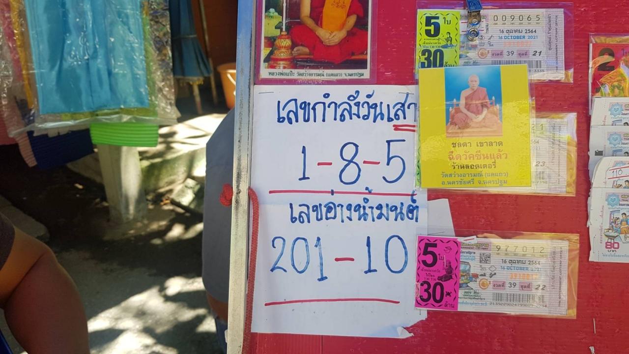อย่างไรก็ตาม บริเวณแผงลอตเตอรี่ที่ตั้งอยู่ภายในวัด ซึ่งเงียบเหงามานานก็เริ่มคึกคักตามไปด้วย ทุกแผงต่างมีการขึ้นป้ายเลขหยดน้ำตาเทียนทุกแผง 201, 10 และเลขกำลังวันหวยออก 186 ให้ลูกค้าได้เลือกหาเพื่อเสี่ยงโชคกันต่อไป.
