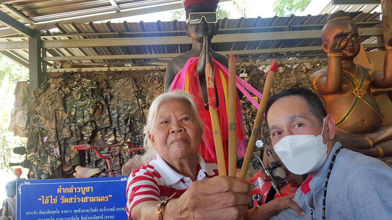คุณยายวัย 82 นำเครื่องเซ่นไหว้ พร้อมสร้อยคอทองคำหนัก 1 บาท มาให้ "ไอ้ไข่ สามนคร" วัดสว่างอารมณ์ ยิ้มหวานได้ "เลขเด็ด" กลับไปเสี่ยงโชคงวด 16/10/64