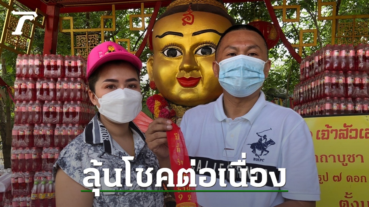 นอกจากนี้ยังได้พบกับ สองสามีภรรยาดวงสุดเฮง นำน้ำแดง 99 ขวด ฟักทอง 9 กก. ประทัด 10,000 นัด เข้ามาจุดถวายและทำการแก้บนให้แก่องค์กุมารทองเจ้าสัวเฮงขี่ช้างพลายรวย และขอเลขเด็ดนำกลับไปเสี่ยงโชคงวดที่ 16 ตุลาคม นี้