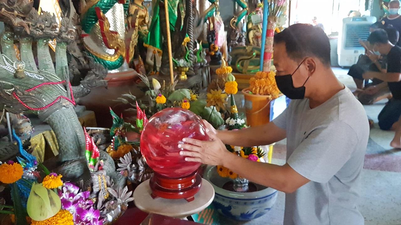 คอหวยส่อง "เลขเด็ด " ลูบลูกแก้วสารพัดนึก ล้วงไข่ในไหทองคำ หน้าพ่อปู่ศรีสุทโธ วัดสว่างอารมณ์ หวังลุ้นโชคงวด 16/10/64
