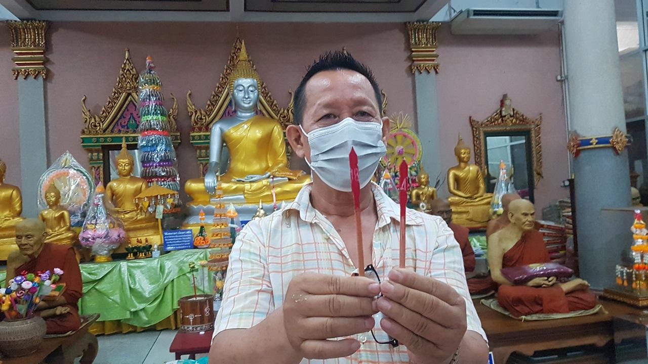 ขณะเดียวกันได้พบกับ นายทวี บัวทอง อายุ 62 ปี อาชีพค้าขาย บ้านอยู่ จ.เพชรบุรี หนึ่งในผู้ที่เดินทางมาขอพร ขอโชคลาภ จุดธูปบูชาบอกกล่าวแลกธนบัตรขวัญถุง หน้าตักพระเงินพระทอง จากการสอบถาม นายทวี ได้เผยว่า ช่วงนี้รัฐบาลประกาศผ่อนปรนจากสถานการณ์โควิด-19 จึงได้มีโอกาสมากราบไหว้พระเงินพระทอง เลยชักชวนภรรยามาทำบุญกัน เคยได้ยินชื่อเสียงของพระเงินพระทอง มานานเกี่ยวกับการให้โชคให้ลาภชาวบ้านมามากมาย ตนเองเคยประสบกับตัวเอง มาแล้วครั้งหนึ่ง เคยมาขอโชคขอลาภแลกธนบัตรแล้วนำไปซื้อลอตเตอรี่ ถูก 3 ตัวตรงๆ เมื่อเกิดโควิดเลยไม่ได้มาเป็นปี เมื่อสถานการณ์โควิดดีขึ้นรัฐบาลผ่อนปรนจึงได้มาอีก