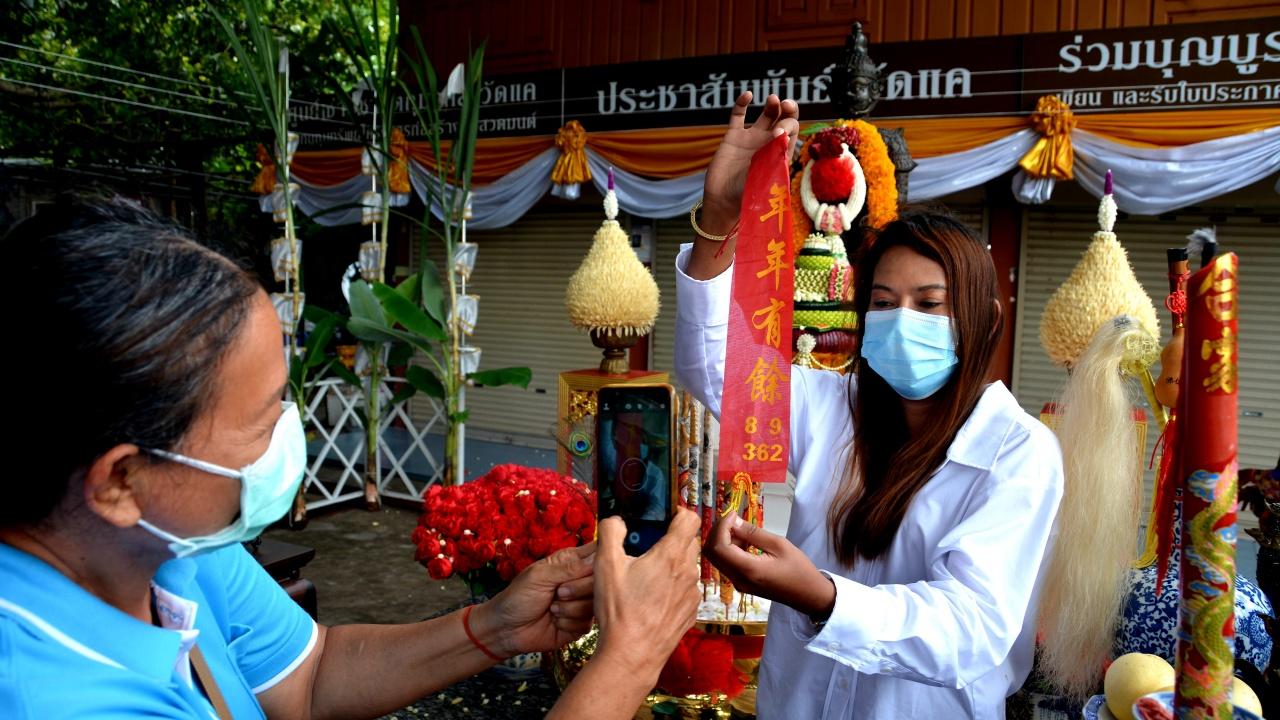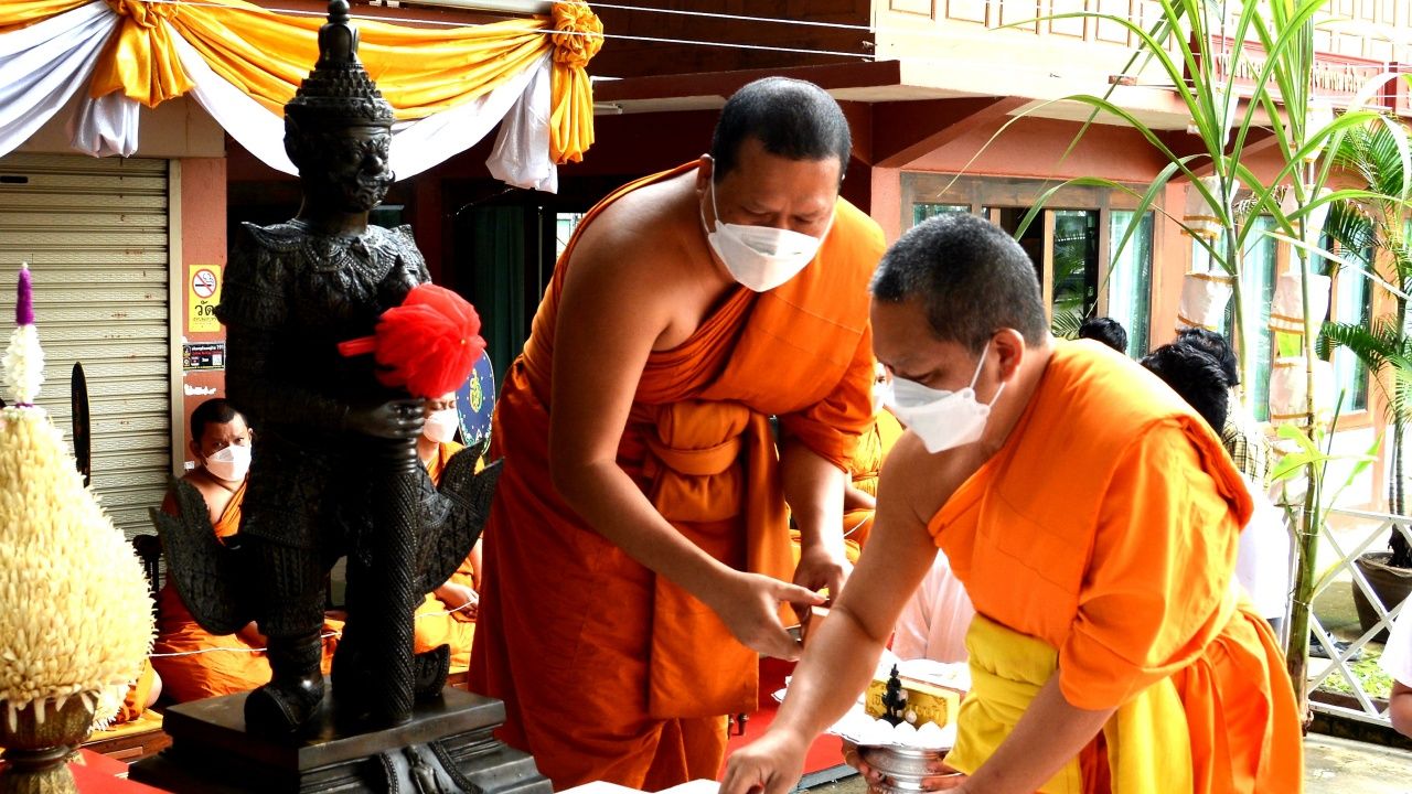นักเสี่ยงโชคมาร่วมพิธี บวงสรวงอัญเชิญองค์ "ท้าวเวสสุวรรณ" วัดแค ขณะที่บรรดาคอหวยไม่พลาด "เลขเด็ด" ลุ้นรวยงวด 1/11/64