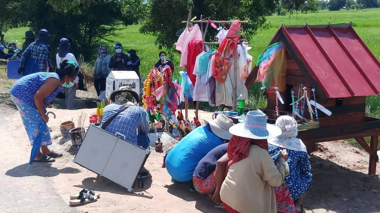 ชาวบ้านแห่ส่องเลขเด็ด งวด 1/11/64 ที่ศาลตายาย ข้างหลักกิโลเฮี้ยน จ.สุรินทร์ หลังที่ผ่านมา มีชาวบ้านได้โชคติดต่อกันมาหลายงวด
