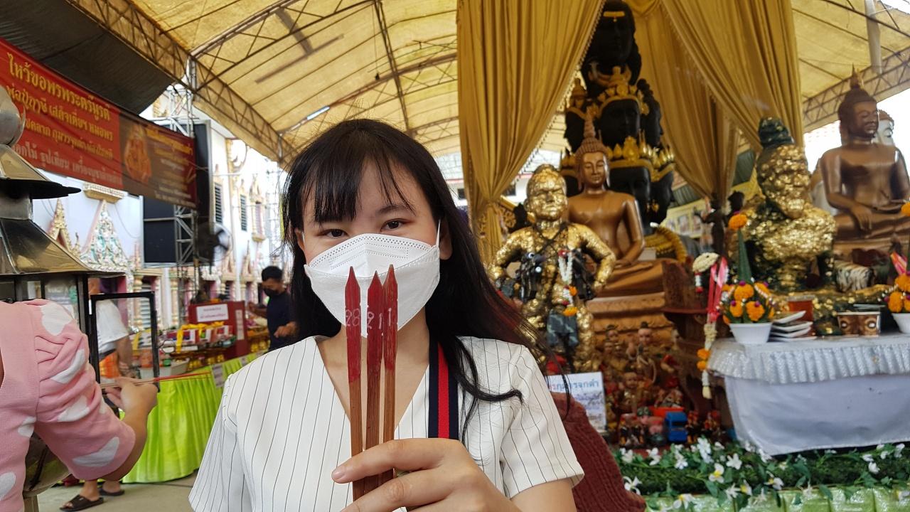 ขณะที่ครั้งนั้น ได้เขย่าเซียมซี 3 ไม้ได้เลข 6, 1, 3 เลยไปหาซื้อลอตเตอรี่ตามแผงภายในวัด หาซื้อเลขท้าย 613 แต่ไม่ได้ดูตัวหน้า แม่ค้าหยิบเลข 077613 มาให้ชุด 2 ใบ ตนเองเลยเก็บไว้จนกระทั่งหลังลอตเตอรี่ออกได้นำไปตรวจปรากฏว่าถูกรางวัลที่ 4 ทั้ง 2 ใบ แล้วรอจนสถานการณ์โควิดคลี่คลายจึงนำของมาแก้บน