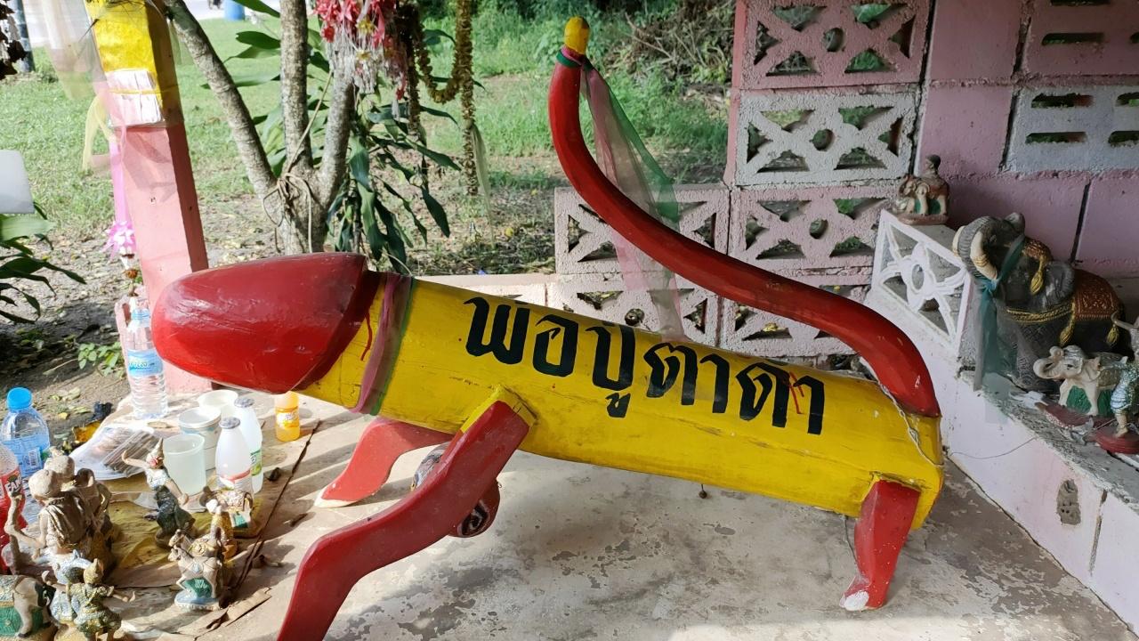 วันที่ 10 พ.ย. 2564 ผู้สื่อข่าวได้เดินทางไปที่ ศาลพ่อปู่ตาดำ ซึ่งตั้งอยู่บริเวณริมถนนด่านทับตะโก หมู่ที่ 1 ต.ด่านทับตะโก อ.จอมบึง จ.ราชบุรี หลังทราบข่าวมีชาวบ้านจากหลายหมู่บ้าน เดินทางไปกราบไหว้ศาลขอพรและขอโชคลาภที่ศาลแห่งนี้ หลังถูกเลขเด็ดจากศาลแห่งนี้เป็นจำนวนมาก ซึ่งภายในศาลจะมีรูปปั้นฤาษีองค์สีดำ ซึ่งชาวบ้านใช้เป็นตัวแทน "พ่อปู่ตาดำ" โดยที่ศาลแห่งนี้มีความแปลกอย่างหนึ่งคือ ภายในศาลจะมีไม้มงคลแกะสลักเป็นรูปปลัดขิก และลำตัวจะมีขาสี่ขา และหางหนึ่งหาง โดยบริเวณลำตัวจะมีสีเหลือง ส่วนบริเวณหัว ขา และหาง จะมีสีแดง