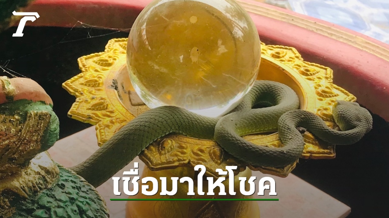 นักเสี่ยงโชคไม่พลาดตีเลขเด็ด หลังเจองูเขียวหางไหม้ นอนขดบนพานลูกแก้วสารพัดนึก หน้าองค์พญานาคราช ที่วัดพระยาทำ หวังเสี่ยงโชคงวด 1/12/64