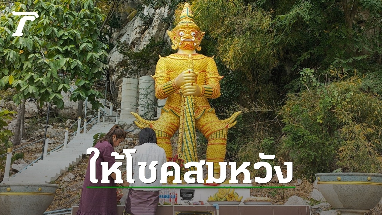 ชาวบ้านมาแก้บน "ท้าวเวสสุวรรณ" บริเวณเชิงเขาสำนักสงฆ์พระพุทธบาทเขาถ้ำพระ พร้อมไม่ลืมขอ "เลขเด็ดงวดนี้" ไปซื้อ "สลากกินแบ่ง" ลุ้นหวยงวด 16/12/64