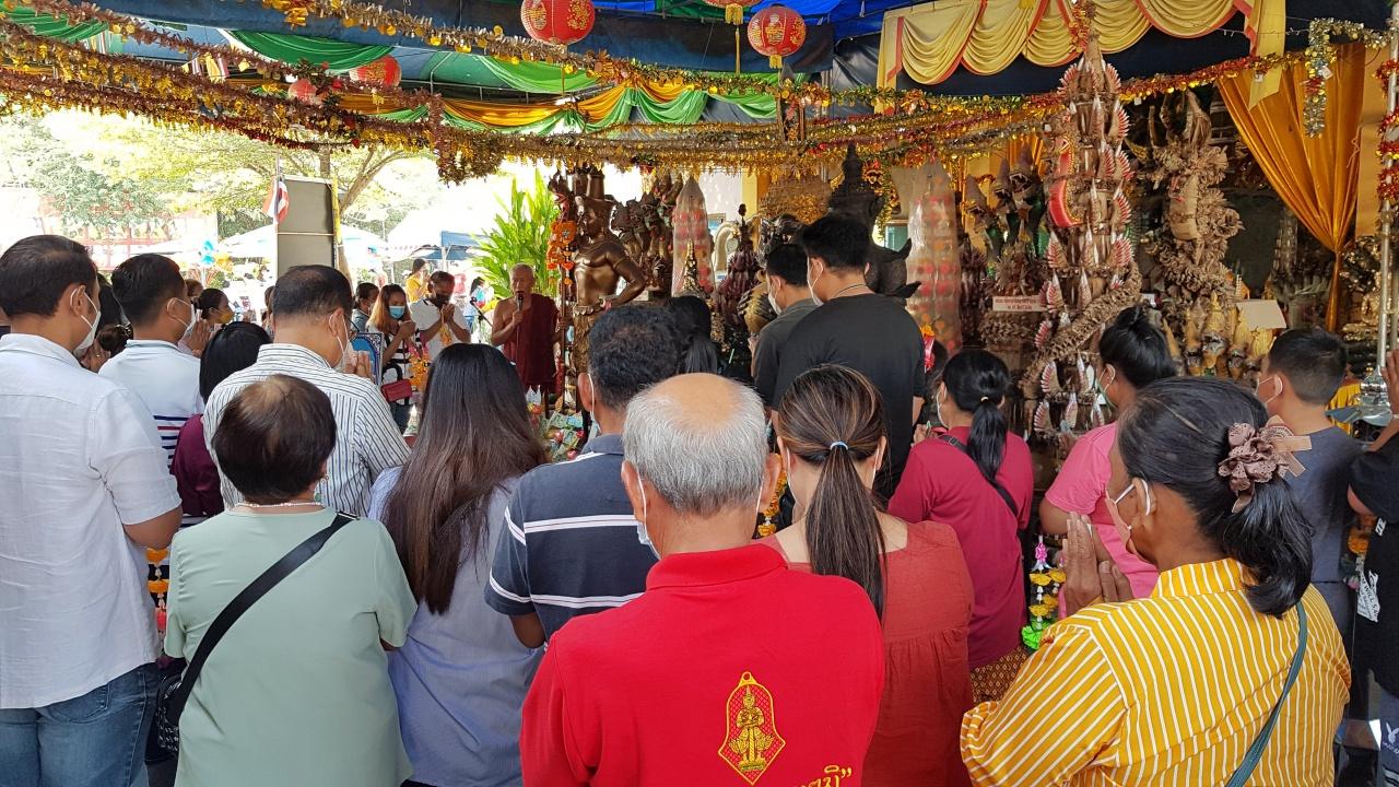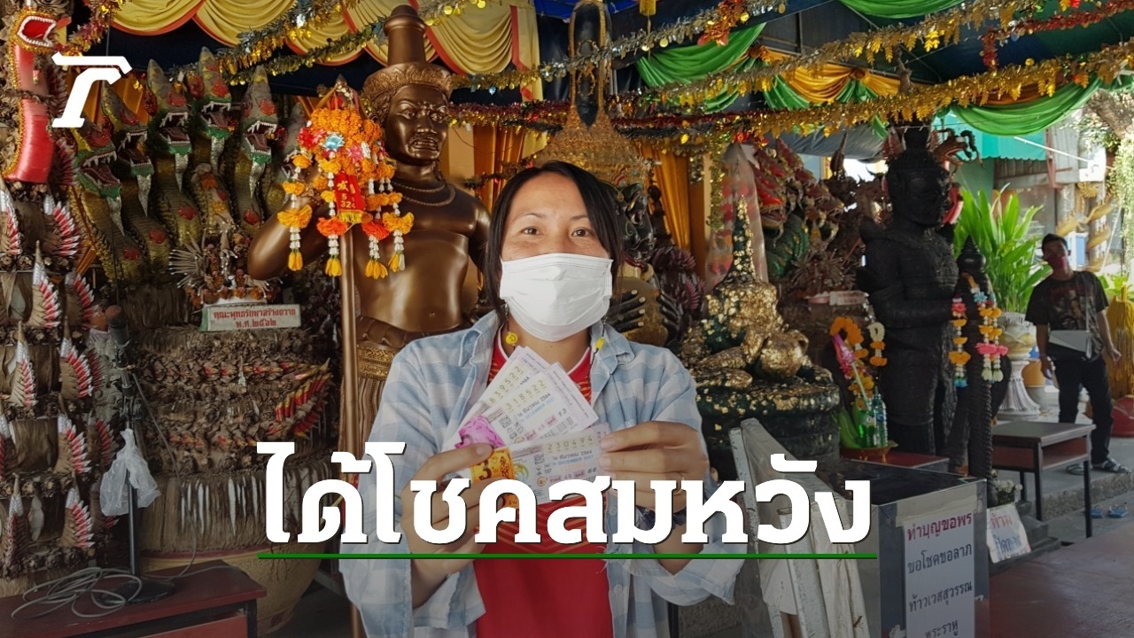 คนดวงเฮงเดินทางมาแก้บน 3 องค์เทพ วัดสว่างอารมณ์ หลังได้โชค 2 ชั้น ถูกลอตเตอรี่รางวัลที่ 5 และถูกเลขท้าย 3 ตัว ได้รับเงินรวม 8 หมื่นบาท พร้อมขอ "เลขเด็ดงวดนี้" กลับไปลุ้น 30/12/64