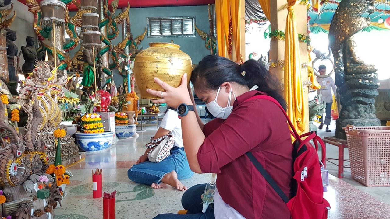 คอหวยเดินทางมาขอพร "พญานาคราช" วัดสว่างอารมณ์ พร้อมหวัง "เลขเด็ดงวดนี้" ให้โชคงวด 30/12/64 เผื่อได้มีเงินไว้กินใช้จ่ายในช่วงต้อนรับปีใหม่ 2565