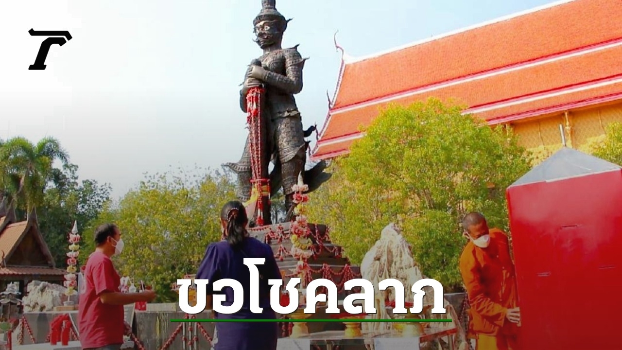 คนแห่เดินกราบไหว้ขอพร "องค์ท้าวเวสสุวรรณ" วัดพระศรีอารย์ จ.ราชบุรี หลังมีคนโชคดีถูก "เลขเด็ด" ได้รับเงินล้าน