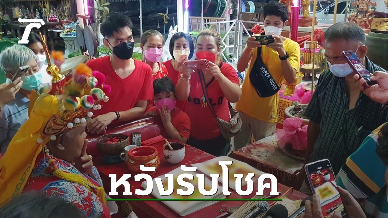พิธีไหว้ขอพร "เทพเจ้าไฉ่ซิงเอี๊ย" ด้านร่างทรงกรีดลิ้นนำเลือดเขียนยันต์ คอหวยไม่พลาดลุ้น "เลขเด็ด" หวังเฮงรับ ตรุษจีน