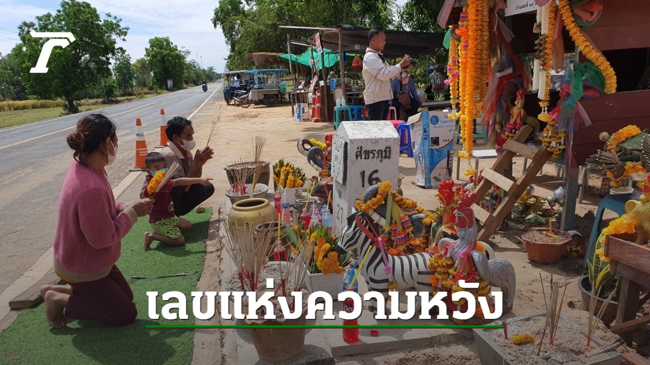 วันที่ 22 ก.พ. 2565 ผู้สื่อข่าวรายงานว่า บริเวณหลักกิโลเมตรที่ 27 ถนนศีขรภูมิ-รัตนบุรี จ.สุรินทร์ บรรยากาศก่อนวันหวยออก ค่อนข้างคึกคักเป็นพิเศษ เนื่องจากจะมีชาวบ้านเดินทางมาหา "เลขเด็ด" เช่นเดียวกับ นายอุดร และนางวรรณ สองสามีภรรยา ซึ่งขับรถมาจากจังหวัดอุบลราชธานี เพื่อมาไหว้ขอโชคที่หลักกิโลแห่งนี้ เนื่องจากมีเพื่อนๆ เคยมาขอเลขเด็ดแล้วได้โชคลาภ จึงเดินทางมาขอบ้าง เมื่อไหว้ขอแล้วก็ใช้มือล้วงหยิบไข่เสี่ยงโชคได้เลข 910 จึงไปหาซื้อลอตเตอรี่ไว้เสี่ยงดวงงวดวันที่ 1 มี.ค. 65 นี้