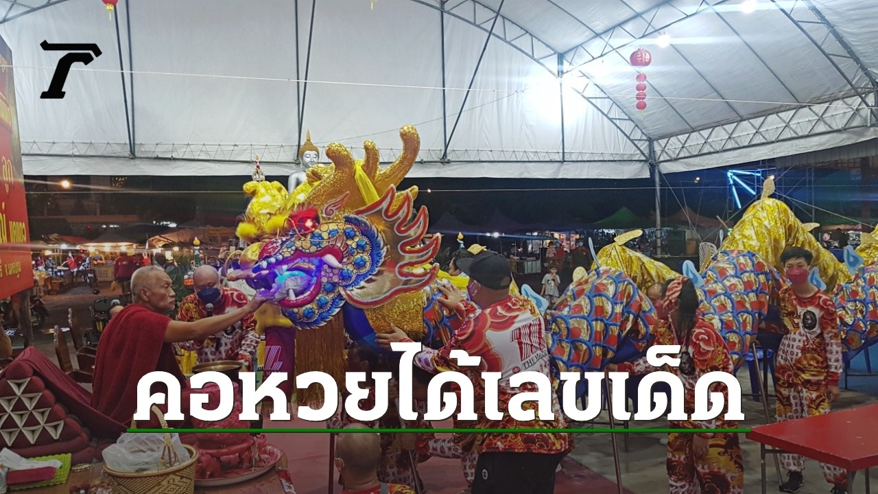 อย่างไรก็ตาม ในการแสดงของชุดสิงโต มีการแสดงต่อตัวยืน 6 คน สร้างความตื่นตะลึง และยังมีการแสดงของสิงโตเดินข้ามเสา และมังกรขึ้นเสาพ่นไฟ สร้างเสียงปรบมือดังกึกก้อง ที่ผู้คนและบรรดานักเสี่ยงโชคจับจ้องคือหางประทัดที่จุดก่อนการแสดงจะเริ่มขึ้น 1 หมื่นนัด เมื่อสิ้นเสียงประทัดทุกคนต่างวิ่งไปดูหางประทัดที่จุด ปรากฏว่าได้เลข 267 และ 68 คอหวยไม่พลาดไปหาซื้อลอตเตอรี่ตามแผงในวัด จนเลขดังกล่าวหมดเกลี้ยงแล้ว.